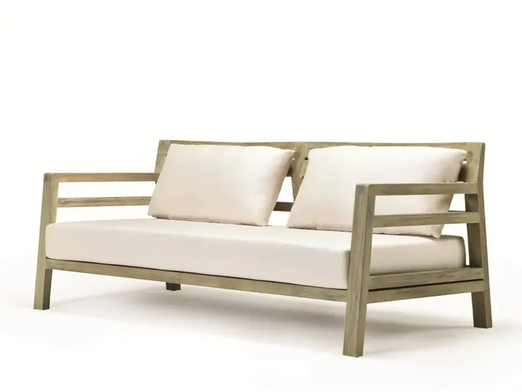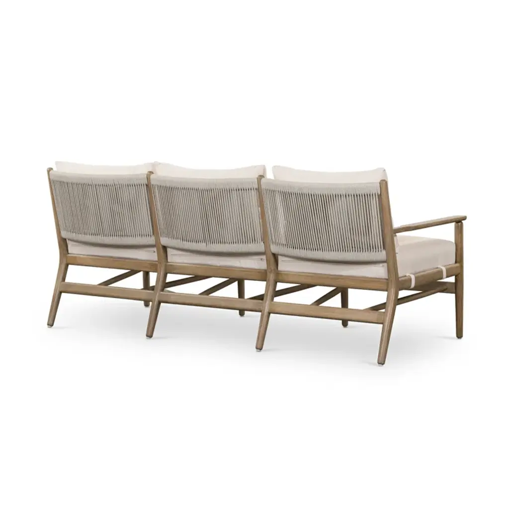 Made with FSC®-certified eucalyptus, tapered legs, and paddle arms lend a slim, shapely look to outdoor-friendly sofa seating with durable, hook & loop fastener-secured box cushions. Linear rope detailing on the back adds texture. Cover or store indoors during inclement weather and when not in use.