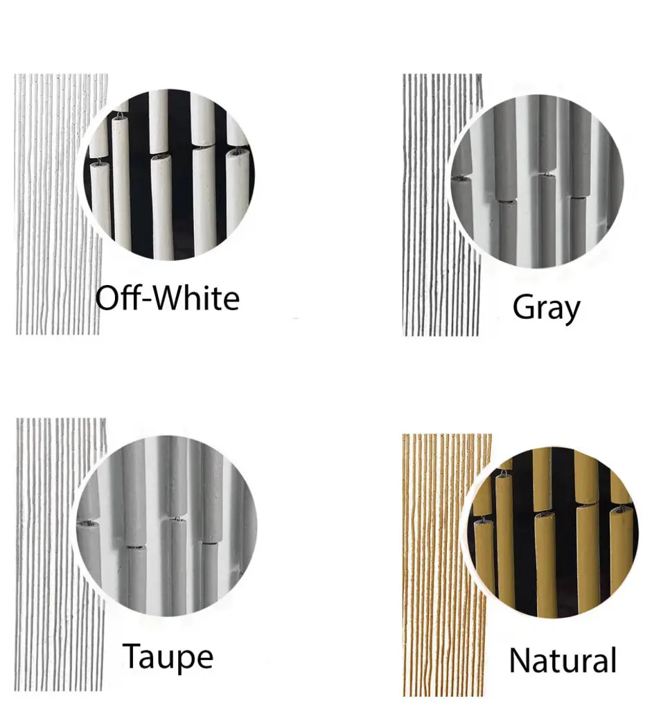 • HANDCRAFTED: Made from natural bamboo tubes, this hand-painted curtain is the perfect solution to enhance any room. 4 colors available: off-white, natural, taupe or gray• INDOOR-OUTDOOR: Use this versatile door curtain inside or outside in a sheltered space. Place it over an existing door, a window or a background, as a closet curtain or room divider• NATURAL BARRIER: Featuring 65 strands, this bamboo beaded curtain prevents flies and mosquitoes from entering. It lets in air and light while bringing privacy• EASY INSTALLATION: This curtain door arrives fully assembled with 2 hooks attached to the wood rod. 4 screws included to complete the installation• HEIGHT & WIDTH ADJUSTABLE: Dimensions of 79" H x 36" W (200 cm x 90cm), the beads can be removed to adjust the height. The wooden bar can be cut with a saw to adjust the width. This taupe bamboo beaded door curtain is ideal to preserve your privacy. Besides, it promotes thermal protection and reduces the entrance of flying insects. Suitable for decorating an opening or separating a room, this bamboo door curtain will certainly bring the finishing touch to your decoration. Created for intensive passages, it always come back in place! Equally important, you protect the environment with this 100% bamboo sticks door curtain. Designed in France, manufactured in Vietnam. Enjoy its natural material, trendy color and oriental style. Also, this handmade door curtain is adjustable in height and width. Cut it to the size you want! Installed in the blink of an eye, this door curtain will make the room look more comfortable. Cords can be a deadly danger for children, especially the youngest ones. For this reason, keep cords out of the reach of young children to avoid strangulation and entanglement. Let this bamboo beads door curtain sublimate your interior and make your space cozier.