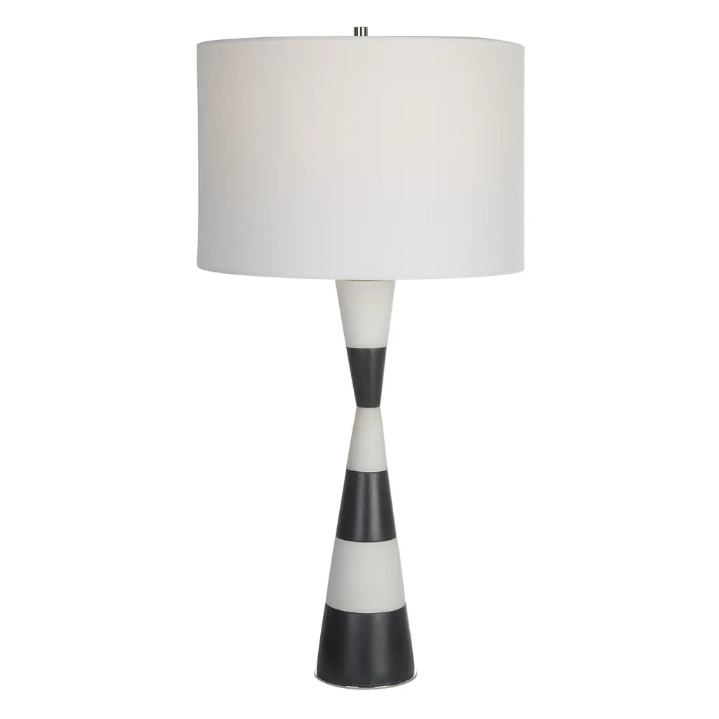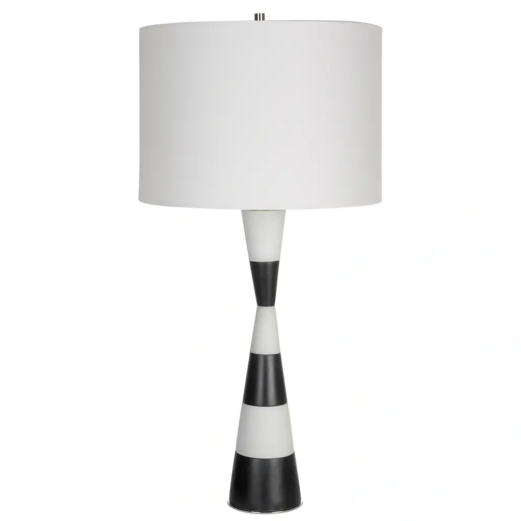 Banded Hourglass Table Lamp With Drum Shade - 29.5" - Black And White - Black