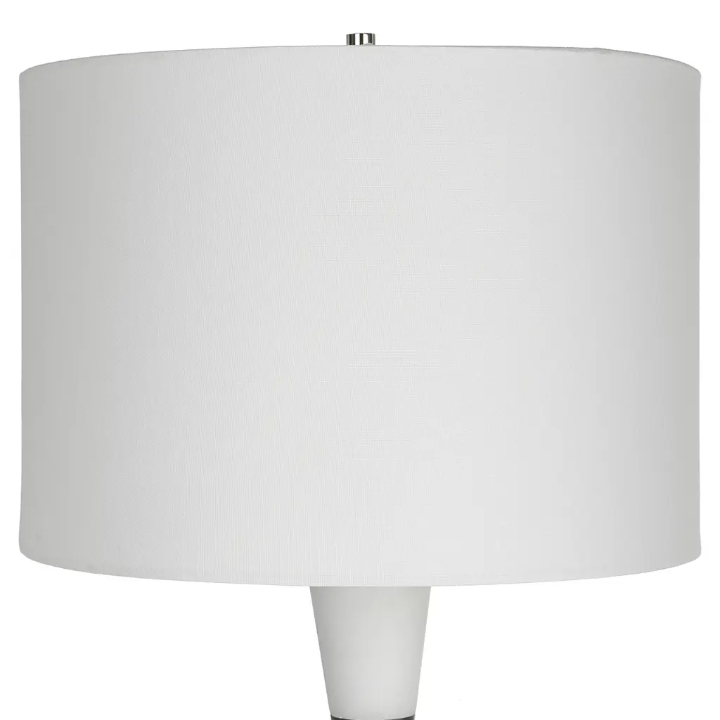 Unveil timeless elegance with our hourglass-shaped lamp, crafted from banded stone, intricately replicating the allure of iron details finished in polished nickel. This refined piece, adorned with a drum shade, enriches your living room, marrying sophistication with enduring style for a truly captivating ambiance. Product Features: Black and white banded table lamp Table lamp features an hourglass shape design Iron details are finished in a polished nickel Drum shade Is covered in a fabric Recommended for indoor use only Additional Features: Wattage: 150W Bulb type: E26 (Standard) Socket type: 3-Way Switch type: socket switch Dimensions: Overall dimension: 29.5" high x 14" diameter Shade dimension: 10" high x 14" diameter Material(s): rice stone/resin/iron/linen fabric