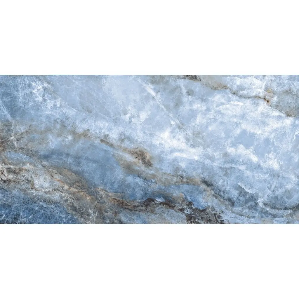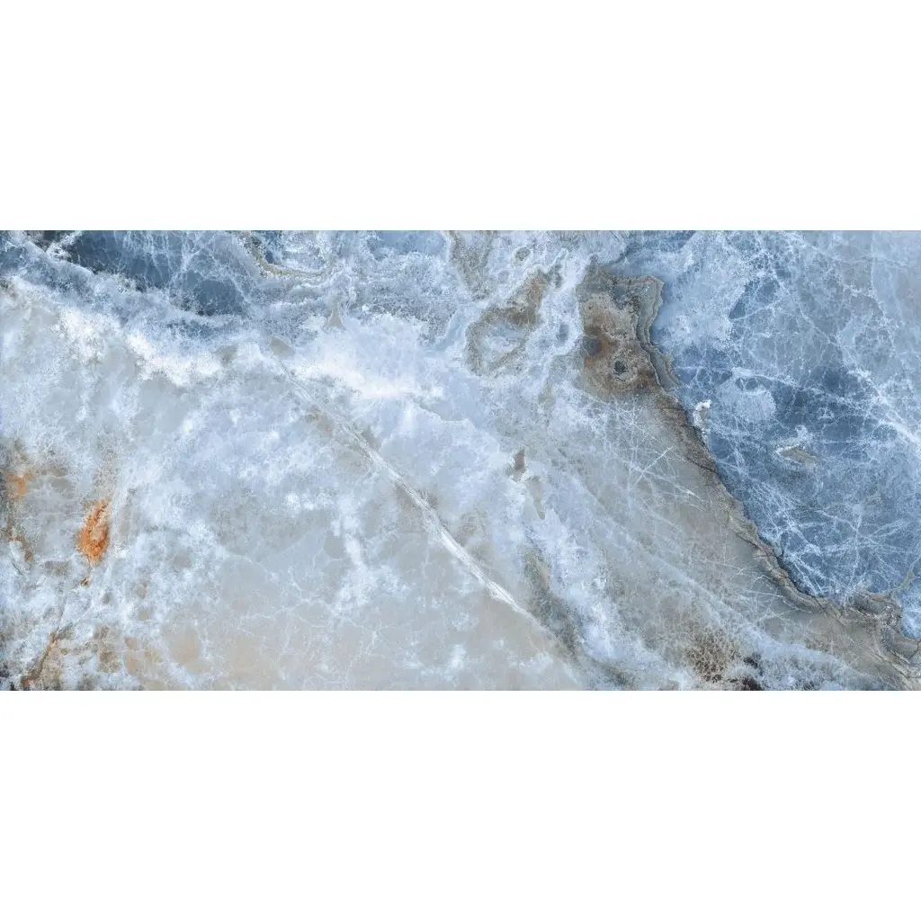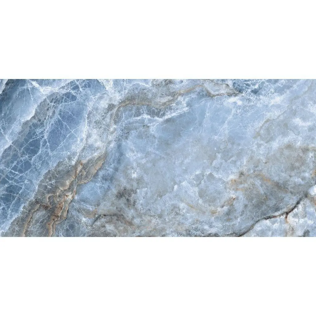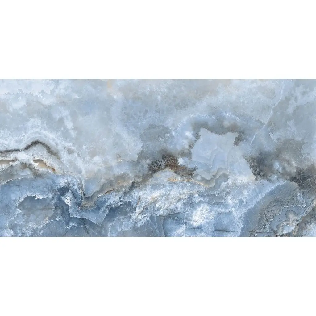 Express your creativity and individuality with the visual appeal of our Banff collection. A testament to the beauty water-colored onyx can bring to your space, this collection is a harmonious blend of artful craftsmanship and natural wonder. Inspired by the mesmerizing luminosity of onyx, each tile showcases alternating layers of color, reminiscent of the rich banded patterns found in the stone's fluid veins. Available in three distinct jewel-toned colors--blue, jade, and white—these tiles serve as a perfect transitional tile for any design aesthetic. The result is a sophisticated, dynamic look that adds depth and character to any space. FEATURES: Crafted in Italy Authentic onyx-inspired design Offered in three jewel-toned colors: jade, white, and blue Designed for interior walls and floors Available in smooth matte or shiny polished finish A case of this product includes 2 pieces and covers 15.5 square feet Porcelain, singular, rectangle, matte, rectified, floor and wall tile Impervious and waterproof; Not suitable for outdoor use but are resistant to most elements Matte finish with a V4 substantial variation Ideal for bathrooms, showers, kitchens, floors, walls Approved for residential and commercial installations Easy to install 24 inches x 48 inches large format porcelain tile This product has a PEI Rating of 4 (endurance and hardness indicator) and therefore is suited for all residential uses (walls and floors) and light-duty commercial applications DIMENSIONS: Individual tile size: 24 inches L x 48 inches W Surface area per carton: 15.5 square feet Sample tile size: 4 inches L x 4 inches W