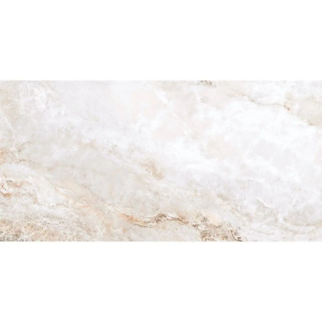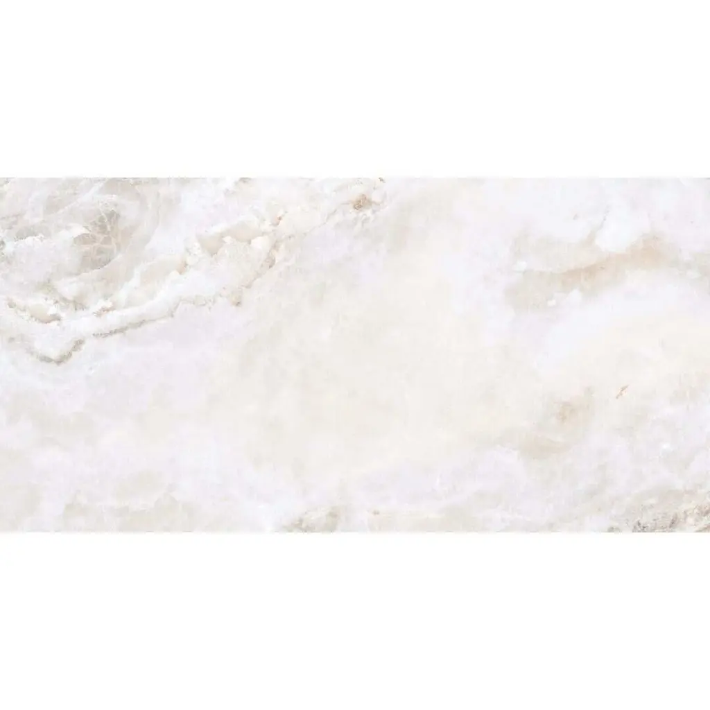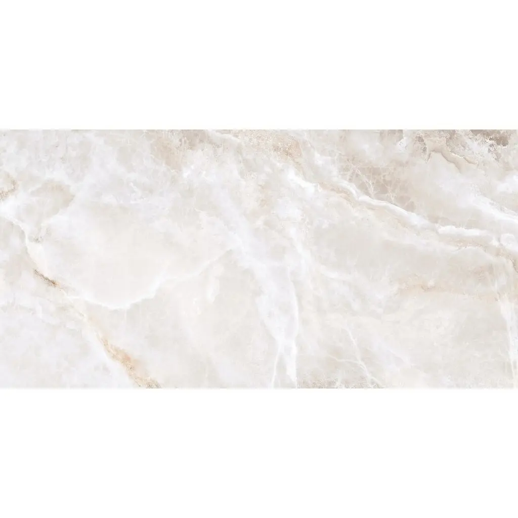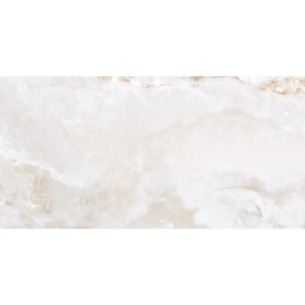 Express your creativity and individuality with the visual appeal of our Banff collection. A testament to the beauty water-colored onyx can bring to your space, this collection is a harmonious blend of artful craftsmanship and natural wonder. Inspired by the mesmerizing luminosity of onyx, each tile showcases alternating layers of color, reminiscent of the rich banded patterns found in the stone's fluid veins. Available in three distinct jewel-toned colors--blue, jade, and white—these tiles serve as a perfect transitional tile for any design aesthetic. The result is a sophisticated, dynamic look that adds depth and character to any space. FEATURES: Crafted in Italy Authentic onyx-inspired design Offered in three jewel-toned colors: jade, white, and blue Designed for interior walls and floors Available in smooth matte or shiny polished finish A case of this product includes 2 pieces and covers 15.5 square feet Porcelain, singular, rectangle, polished, rectified, floor and wall tile Impervious and waterproof; Not suitable for outdoor use but are resistant to most elements Polished finish with a V4 substantial variation Ideal for bathrooms, showers, kitchens, floors, walls Approved for residential and commercial installations Easy to install 24 inches x 48 inches large format porcelain tile This product has a PEI Rating of 4 (endurance and hardness indicator) and therefore is suited for all residential uses (walls and floors) and light-duty commercial applications DIMENSIONS: Individual tile size: 24 inches L x 48 inches W Surface area per carton: 15.5 square feet Sample tile size: 4 inches L x 4 inches W