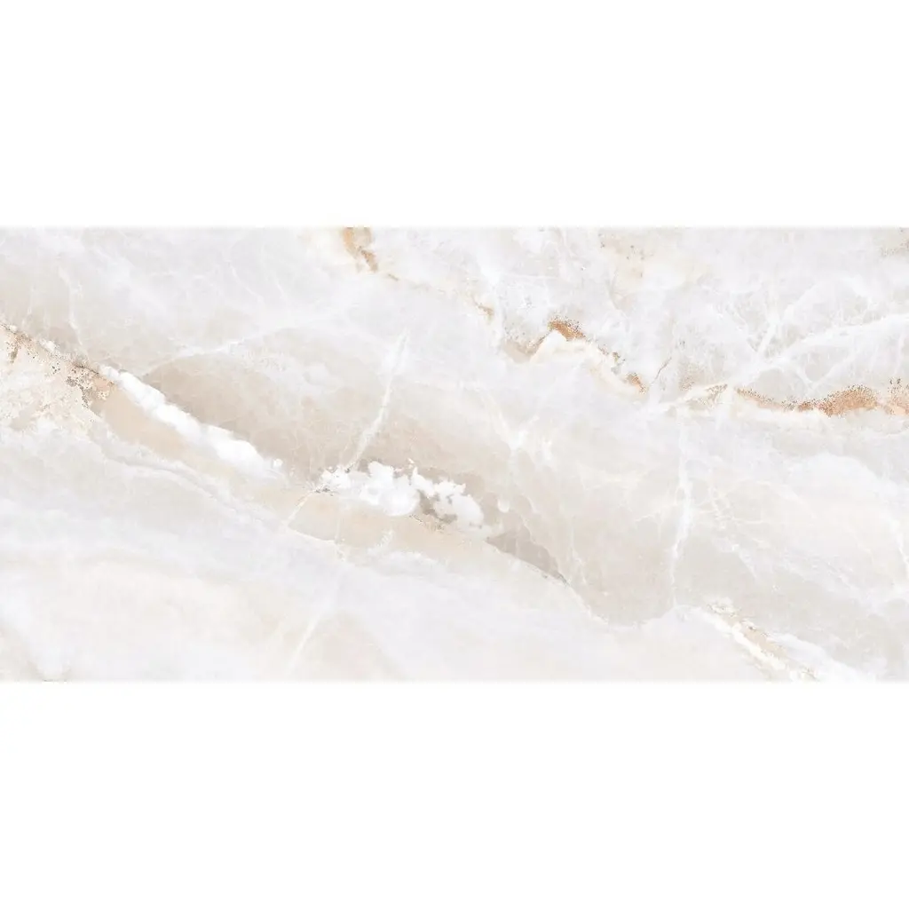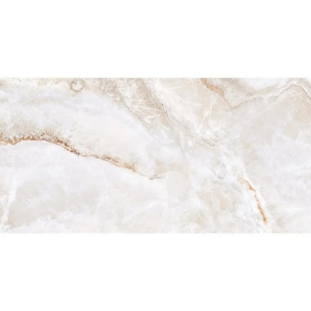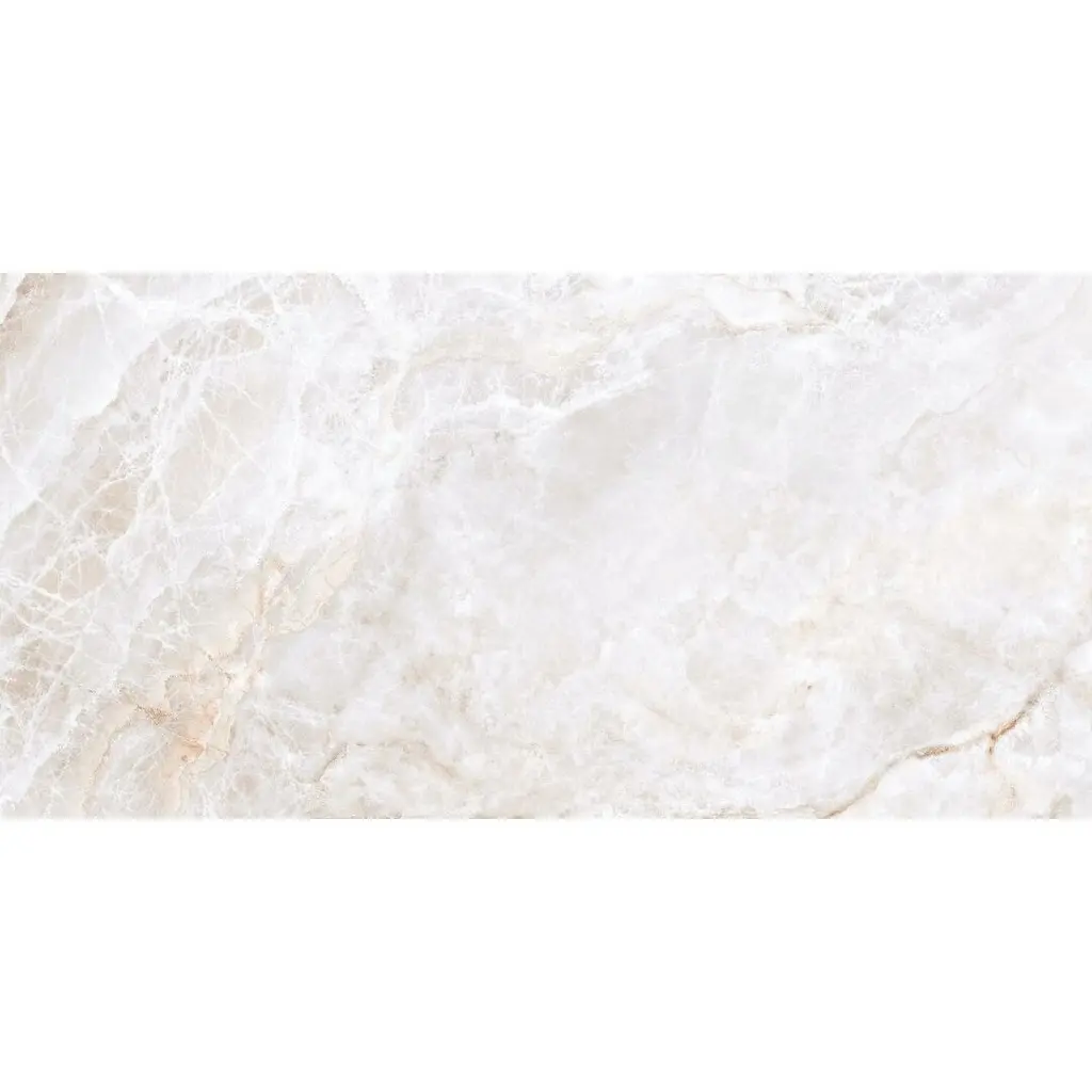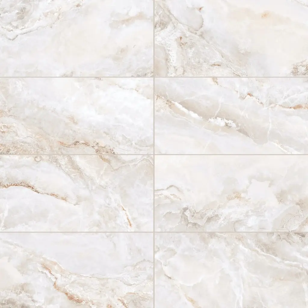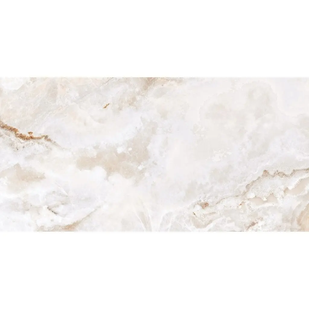 Express your creativity and individuality with the visual appeal of our Banff collection. A testament to the beauty water-colored onyx can bring to your space, this collection is a harmonious blend of artful craftsmanship and natural wonder. Inspired by the mesmerizing luminosity of onyx, each tile showcases alternating layers of color, reminiscent of the rich banded patterns found in the stone's fluid veins. Available in three distinct jewel-toned colors--blue, jade, and white—these tiles serve as a perfect transitional tile for any design aesthetic. The result is a sophisticated, dynamic look that adds depth and character to any space. FEATURES: Crafted in Italy Authentic onyx-inspired design Offered in three jewel-toned colors: jade, white, and blue Designed for interior walls and floors Available in smooth matte or shiny polished finish A case of this product includes 2 pieces and covers 15.5 square feet Porcelain, singular, rectangle, polished, rectified, floor and wall tile Impervious and waterproof; Not suitable for outdoor use but are resistant to most elements Polished finish with a V4 substantial variation Ideal for bathrooms, showers, kitchens, floors, walls Approved for residential and commercial installations Easy to install 24 inches x 48 inches large format porcelain tile This product has a PEI Rating of 4 (endurance and hardness indicator) and therefore is suited for all residential uses (walls and floors) and light-duty commercial applications DIMENSIONS: Individual tile size: 24 inches L x 48 inches W Surface area per carton: 15.5 square feet Sample tile size: 4 inches L x 4 inches W