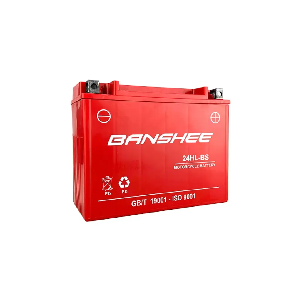 Banshee YTX30L-BS replacement batteries are the worlds strongest group 30Lbs battery available on the market. With 500CCA you can be certain that the banshee agm ytx30lbs battery will start your bike or custom bike. Dont put anything else in your bike upgrade to a Banshee and solve all your issues going forward. Its not a battery its a Banshee. SEALED AGM WITH THICKER HEAVIER PLATES.WEIGHS 20% MORE THEN COMPETITORS.ITS SIMPLE - MORE LEAD MORE BATTERY LIFE AND STARTING POWER. WHY PUT ANYTHING ELSE IN YOUR BIKE?A Heavy Duty Separator increases life is resistant to shock and vibration to prevent shorts.HEAVY duty plates and grids are inside the battery for durability. Banshee 30L-BS Battery 12V 30AH - 500CCAL = 6.61 x W = 5.00 H = 6.85 Terminals as pictured (Positive - R Negative - L) Easy InstallFlush Connect Terminal DesignEasy Install StrapFits and Replaces :CB30L-B 30L-B UB30L-B C30L-B M22H30 YB30L-B CTX30L YIX30L M7230L GTX30L-12B ES-TX30L SC30LFA MB YTX30L EBX30L-BS PIX30L-BS CTX30L M7230L YIX30L TX30L