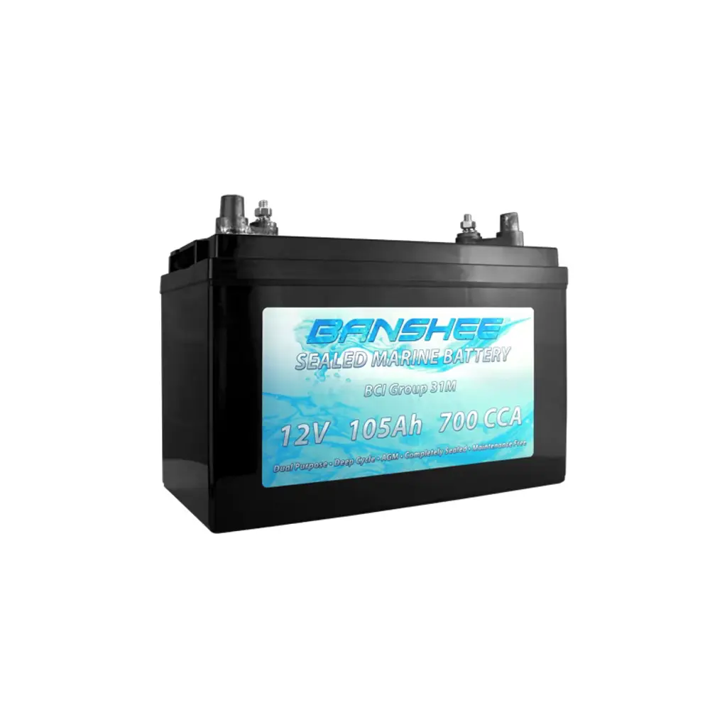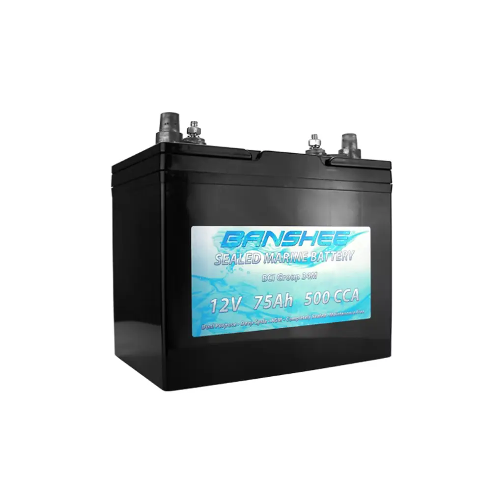 Unleash the Banshee this year with the new Group 27M deep-cycle marine battery with dual terminals. Banshee batteries are designed to withstand rigorous deep charges as well as long slow recharges. The Banshee marine deep-cycle battery is a direct replacement for Optima D27M batteries and guarantees excellent recharge capabilities for long lasting performance. Banshee marine batteries are produced and manufactured using only the most up to date materials. All Banshee group 27 batteries have a built in Hydrometer which easily tells the current state of your battery life. Our group 27 marine battery is rugged, powerful, resilient, and should be the only battery you rely on for cranking, igniting, and lighting. The advantage of buying Banshee Marine Batteries is that they have more battery plates. More battery plates mean more plate surface area. That means that the Banshee battery has more power – twice as much as conventional batteries. Banshee batteries are capable of providing engine cranking As good as any other battery equally sized, even at very low temperatures. And they can handle 400 charge-discharge cycles to 80% depth of discharge. Enhanced Flooded Battery or increasingly referred to as EFB technology on the market can not be installed on its side or upside down. EFB batteries are an enhanced version of standard wet-flooded technology. The primary benefits of EFB technology are improved charge acceptance and greater cyclic durability when operating in a reduced state of charge (typical of Stop Start applications).