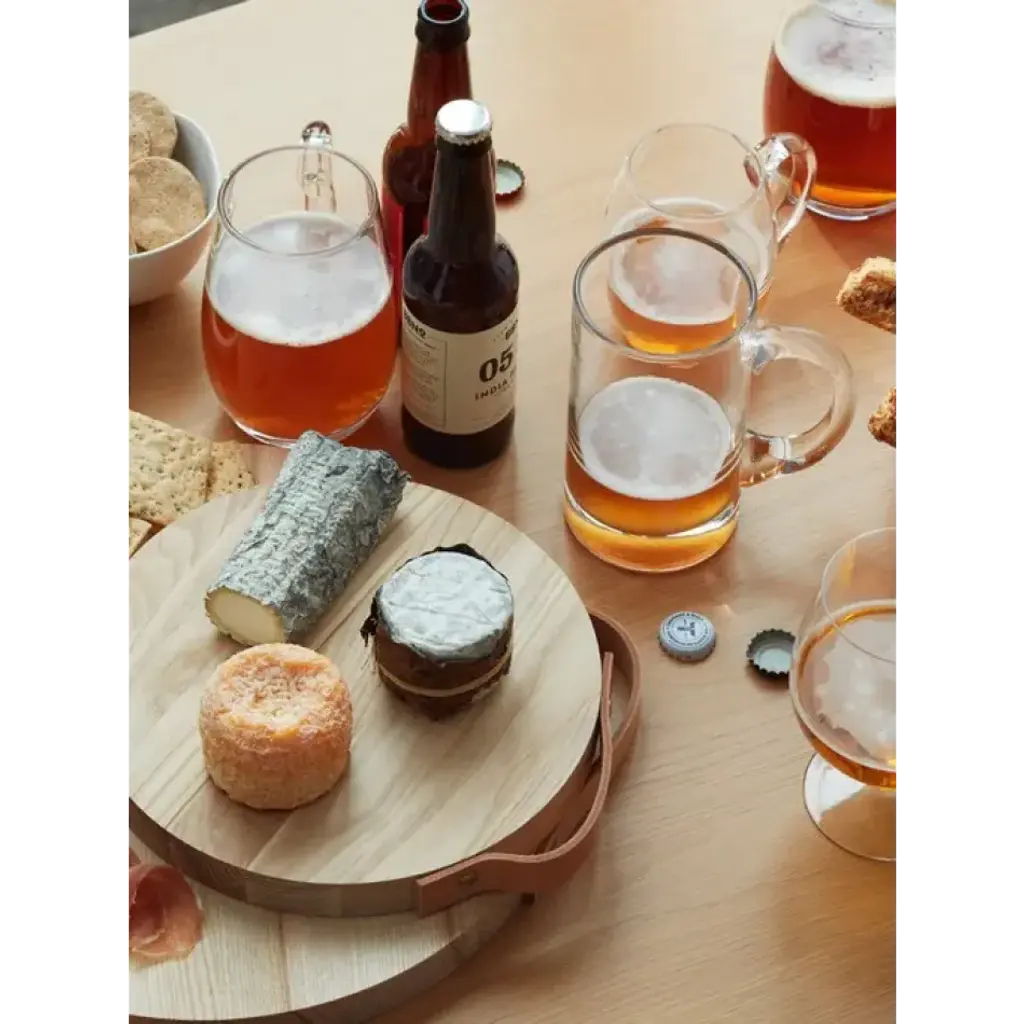 A glass tankard with generous proportions, mouth blown by skilled glassblowers. Accomodates a pint of beer. The handle is shaped using wooden tools and applied by hand to the body of the tankard.