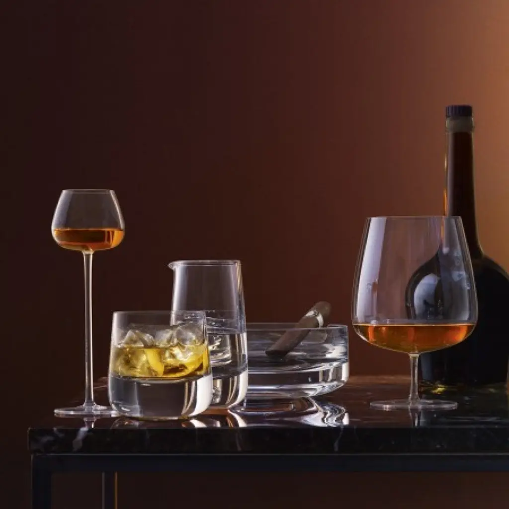 A pair of mouthblown cognac balloon glasses with fine rims and a sophisticated silhouette. Designed for serving cognac, Armagnac and fine spirts, the generously proportioned balloons offer refined shapes for the modern, luxury bar. Each glass is branded and presented in premium packaging.
