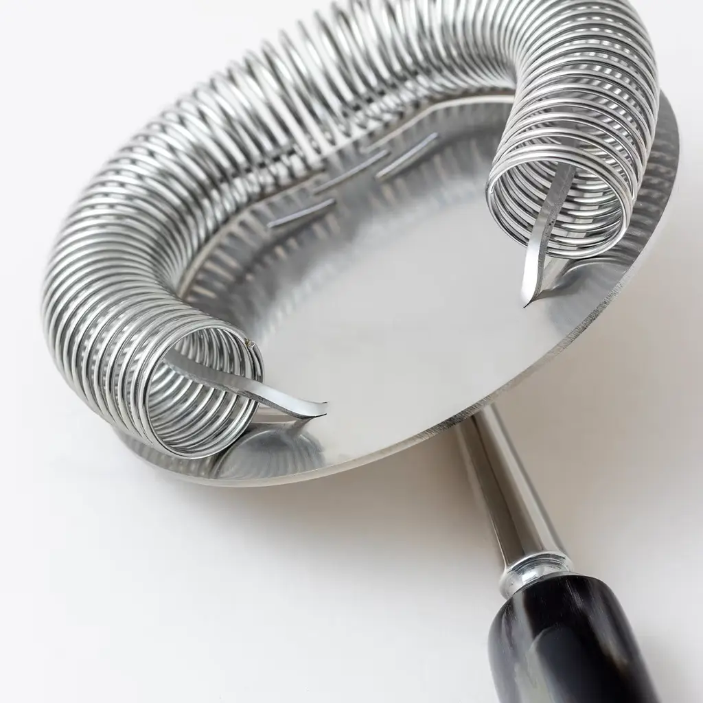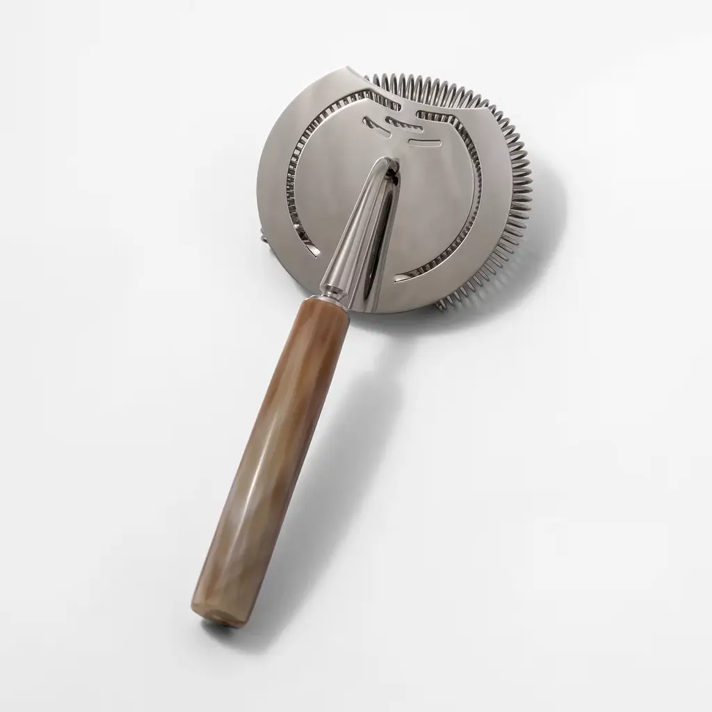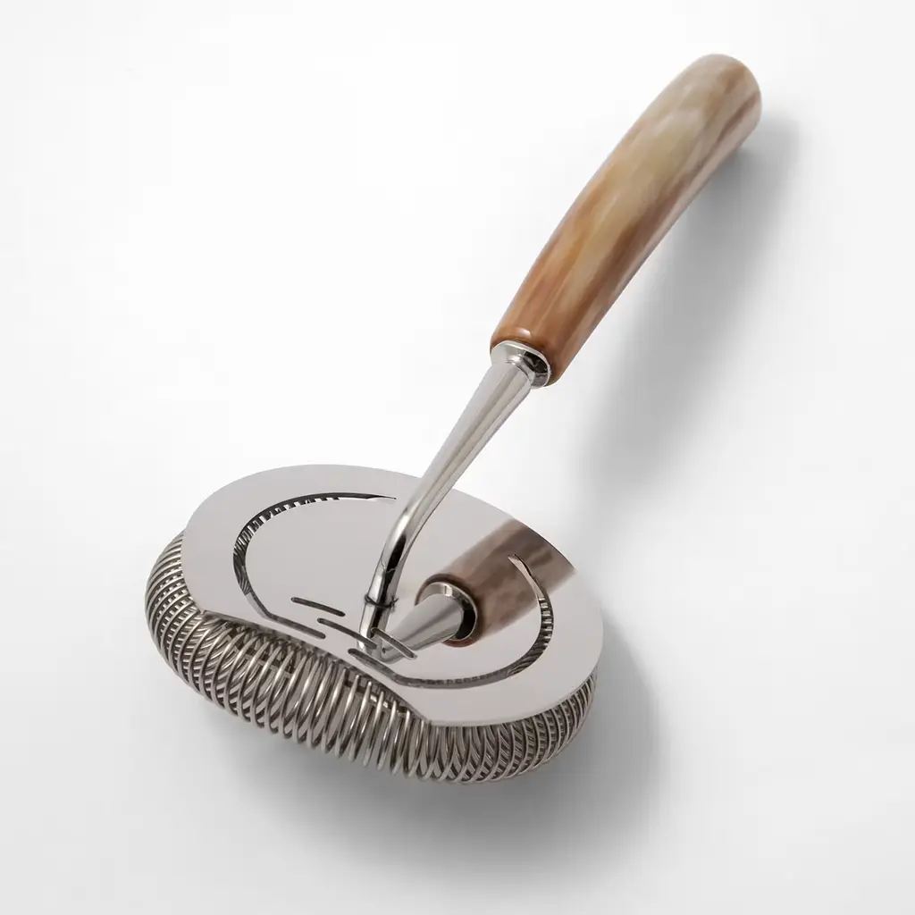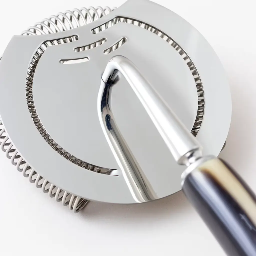 The Bar Strainer in Natural Horn exemplifies elegance and functionality. This stainless steel strainer features a meticulously handcrafted natural horn handle, offering both durability and style. The unique design ensures a perfect fit over cocktail shaker and mixing glasses, allowing for smooth and efficient straining. The contrasting materials add a sophisticated touch to any bar setup, making it an essential accessory for entertaining. Part of the Artemide Collection.