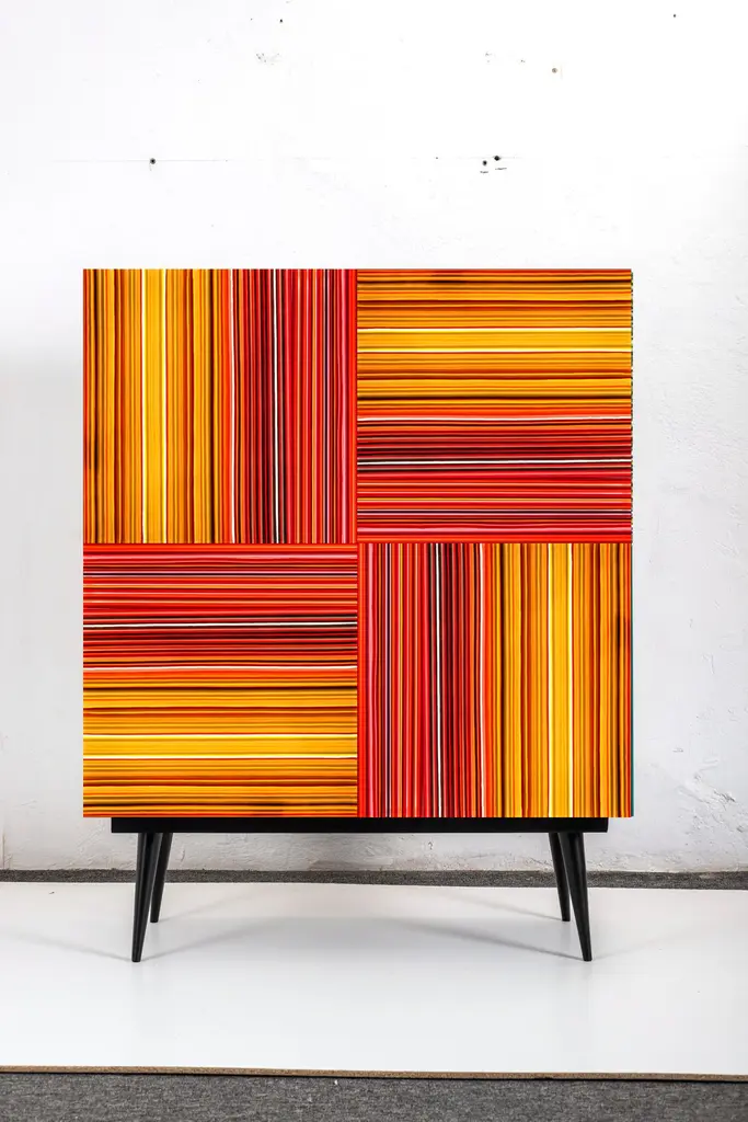 Bar designed by Orfeo Quagliata in collaboration with Taracea Furniture. An object of fused glass created with the exclusive barcode technique. The Bar's simple and retro design mixed with designer's exceptional glass expertise put together a cutting edge interiors proposal.