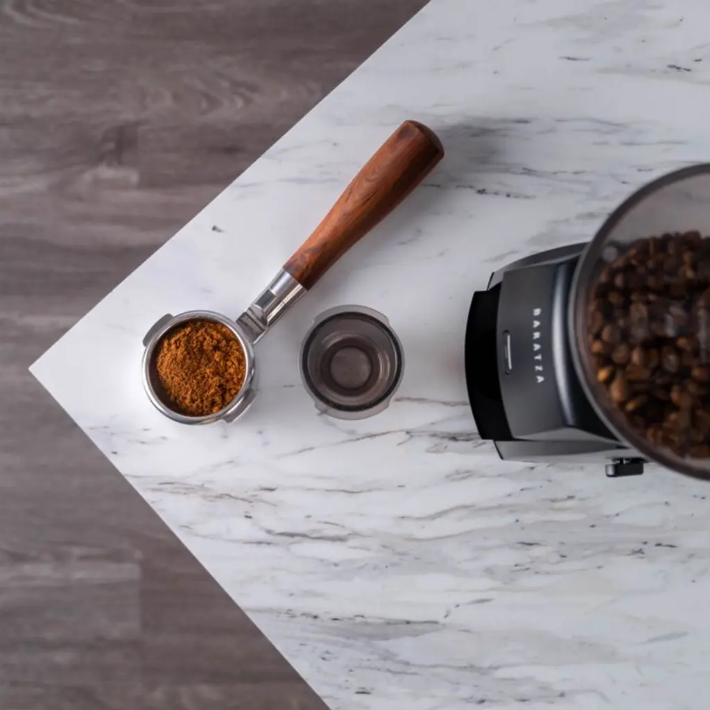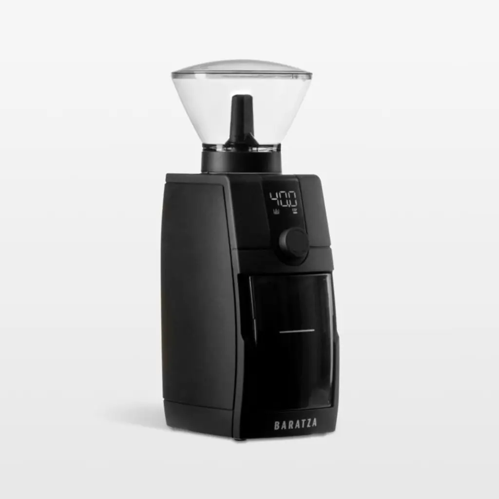 The black Baratza Encore ESP grinder features high-carbon steel burrs that produce precision-ground coffee optimized for espresso, while offering a full range of grind profiles perfect for exceptional coffee drinks from pour-over to French press. Adjustable to 40 different steps, this powerful grinder creates a consistent grind and is incredibly easy to operate and clean.