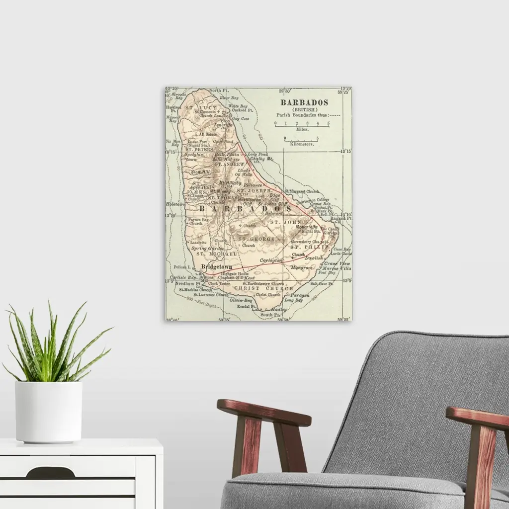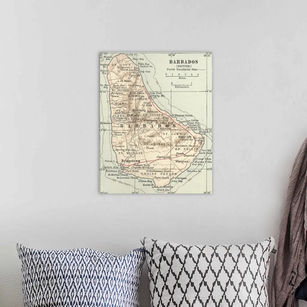 Barbados - Vintage Map wall art for home and office decor. Discover canvas art prints, photos, mural, big canvas art and framed wall art in GreatBigCanvas.com's varied collections.