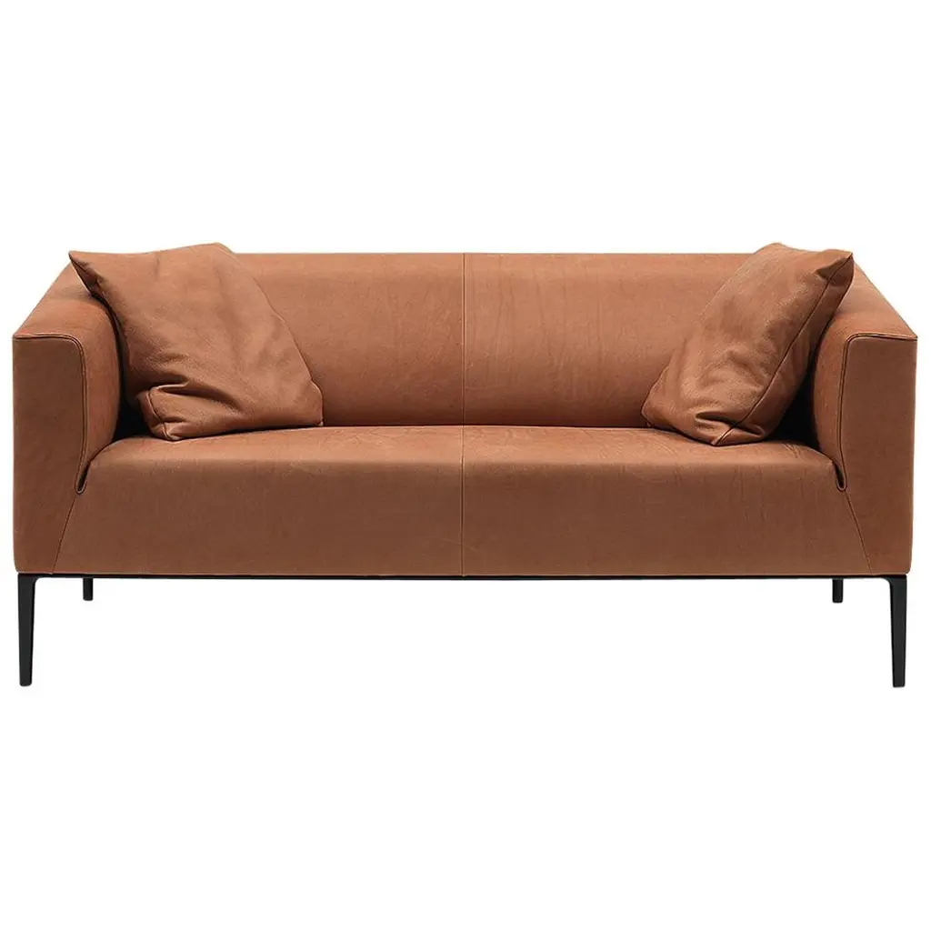 Offering a relaxed and contemporary attitude toward interior design, the Edward Barber & Jay Osgerby Collection for Knoll is distinguished by a pinched pleat stitch that reinforces its architectural profile and plays against the curvature of cusions on each face. As part of the collection, the elegant Two Seater Sofa is constructed of an aluminum and wood frame, and successfully bridges the gap between comfort and stunning aesthetics. Cast aluminum feet--available in chrome or several painted finishes including red and black--serve as anchoring focal points, tastefully contrasting the available range of upholstery options. Customize the Barber Osgerby Sofa to be uniquely yours and enjoy the style and enduring quality for years to come.