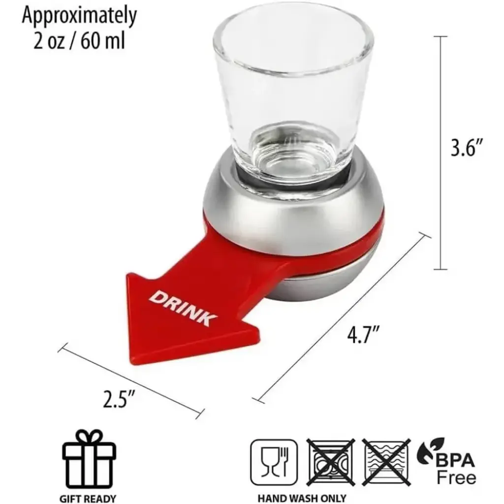 Barbuzzo Retro Spin the Shot Game is classic game with a brand new twist! Explore this game where everybody wins and a spinner decides your fate! Played like spin the bottle, but with shots! Just pour a shot into the shot glass (provided), spin the arrow and whoever the arrow points to must drink! Perfect for any occasion, just bring this drinking party game with you to your next event for endless hours of fun.