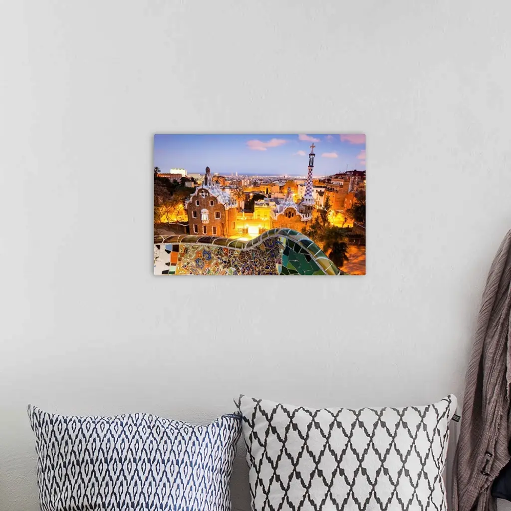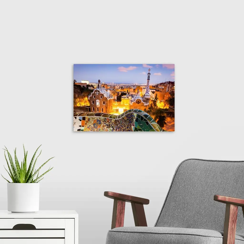 Barcelona, Park Guell, Spain, The Modernism Park Designed By Antonio Gaudi, Dusk