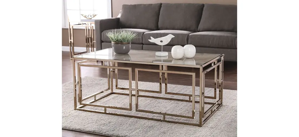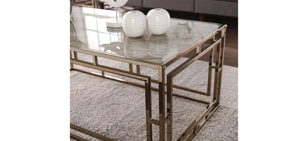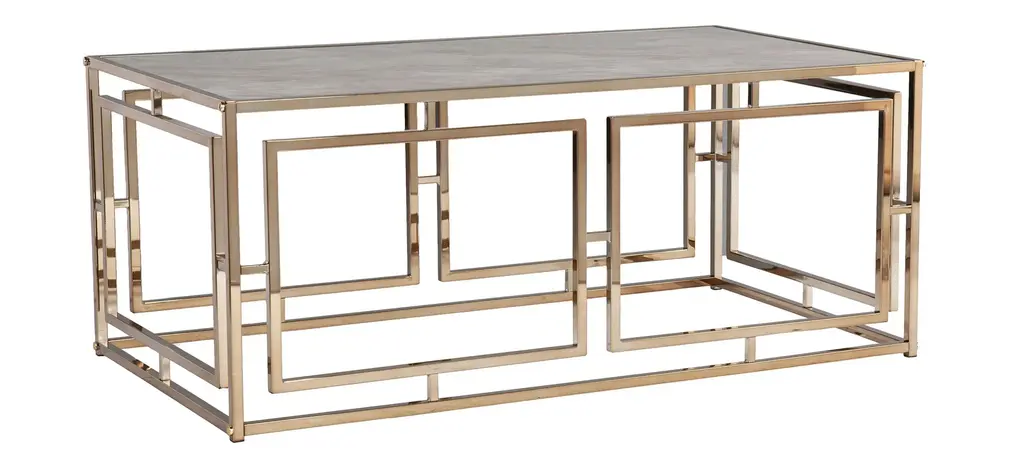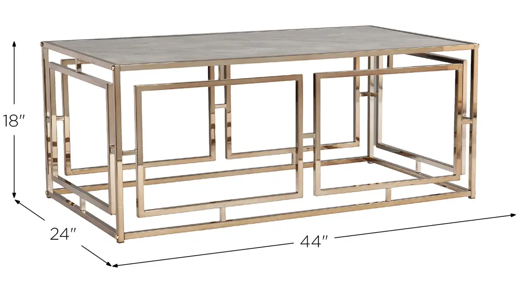 Add a sleek feel to your elegant design with this Barcroft Cocktail Table. A unique metal base creates an intricate windowpane design, while the spacious glass tabletop provides plenty of room for your latest read or a cup of tea. Printed glass crafts a glossy, faux marble look in your living space, adding a touch of modern shine to your traditional decor.