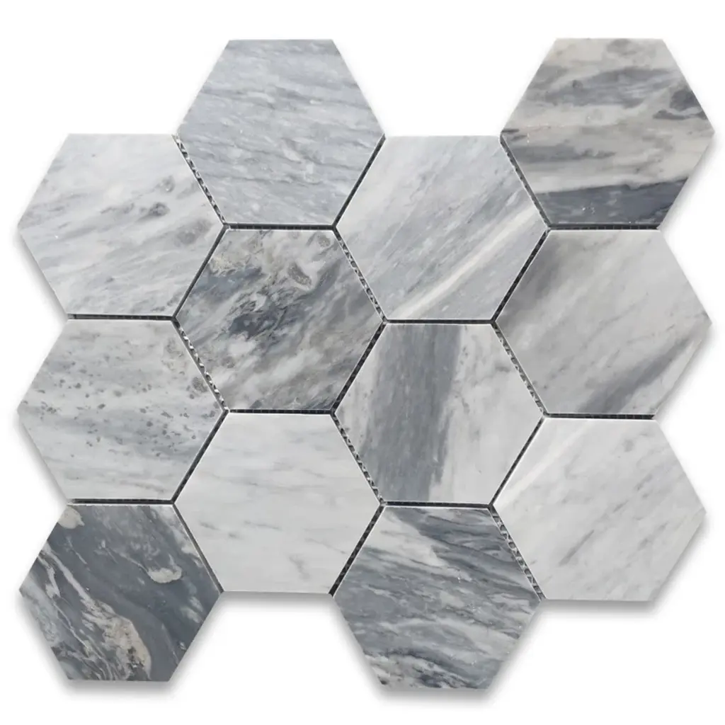 Bardiglio 11" X 12" Marble Honeycomb Mosaic Wall & Floor Tile