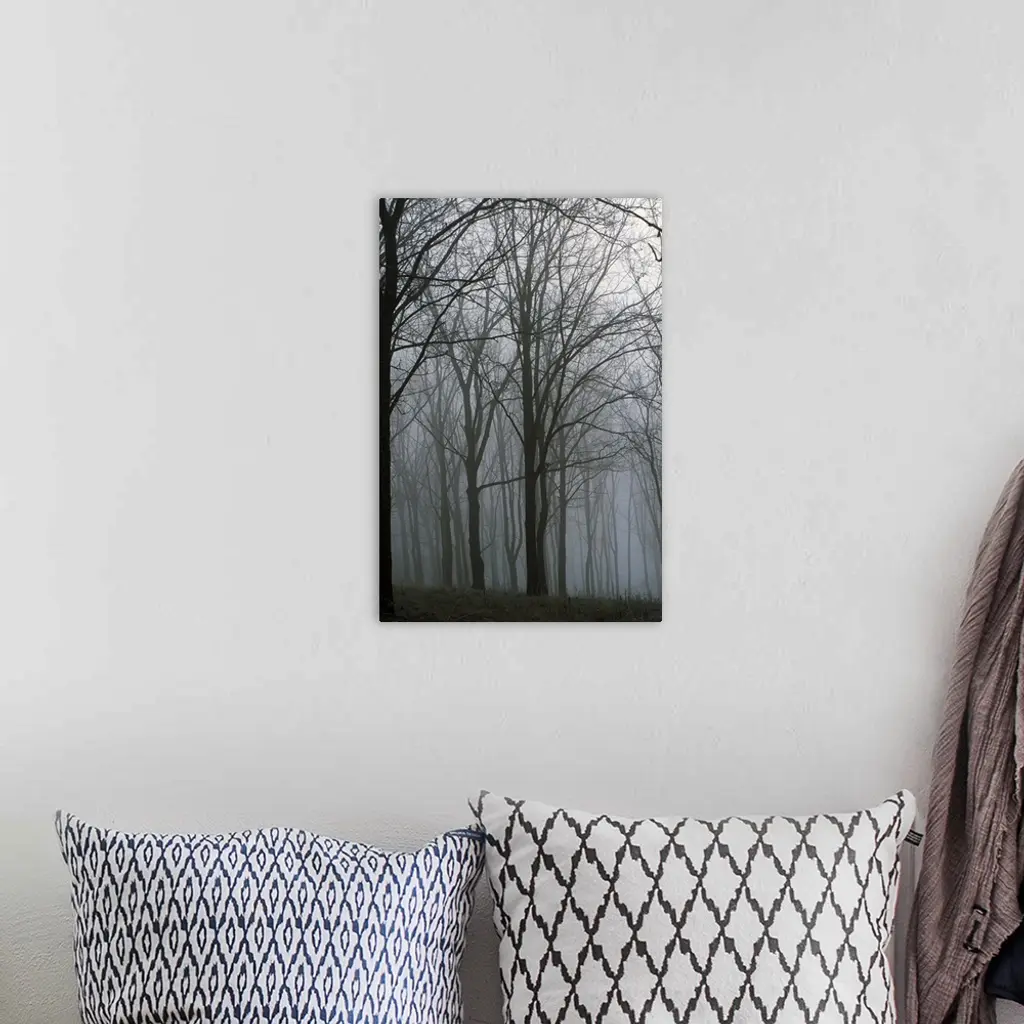 Bare trees in misty forest, Finger Lakes Region, New York wall art for home and office decor. Discover canvas art prints, photos, mural, big canvas art and framed wall art in GreatBigCanvas.com's varied collections.