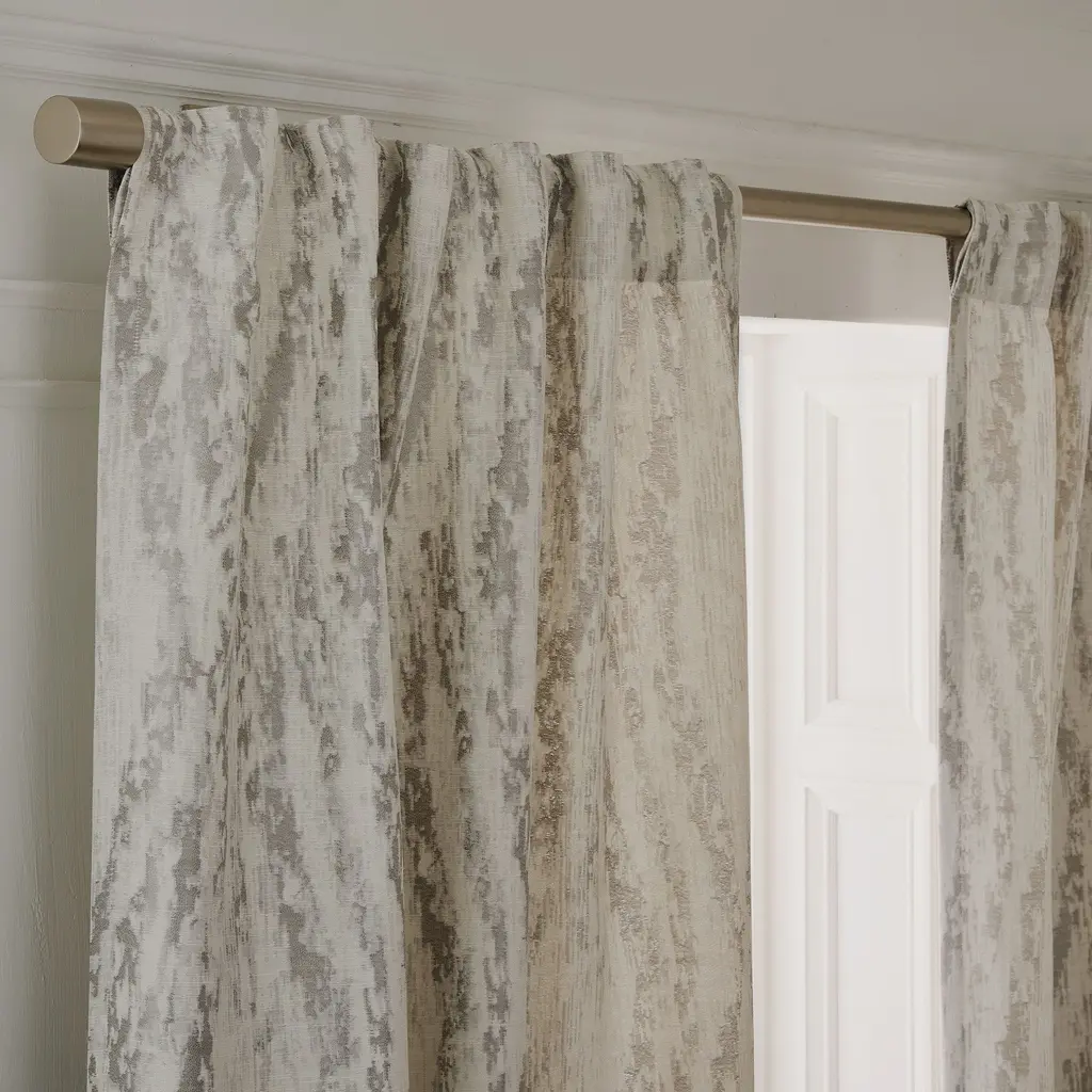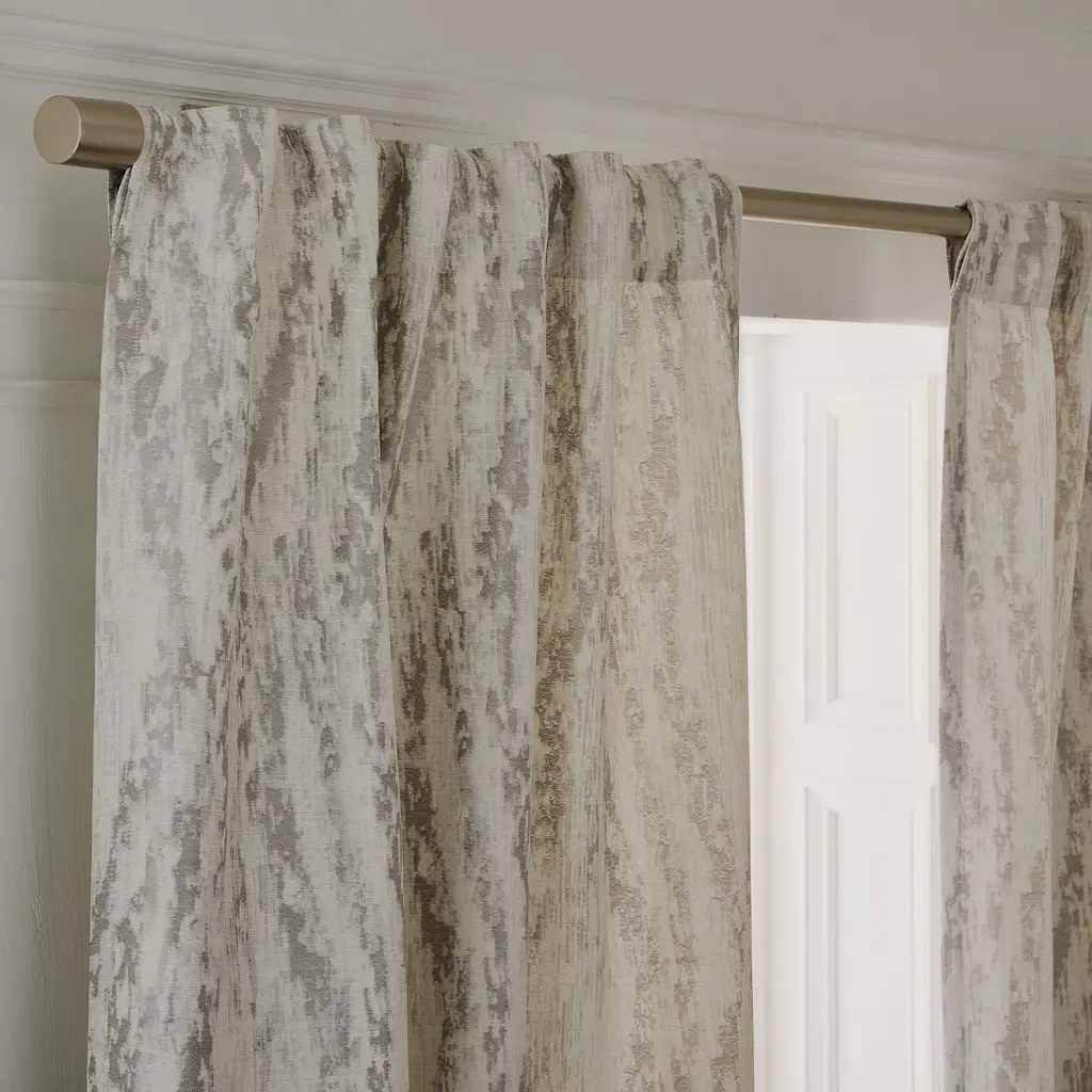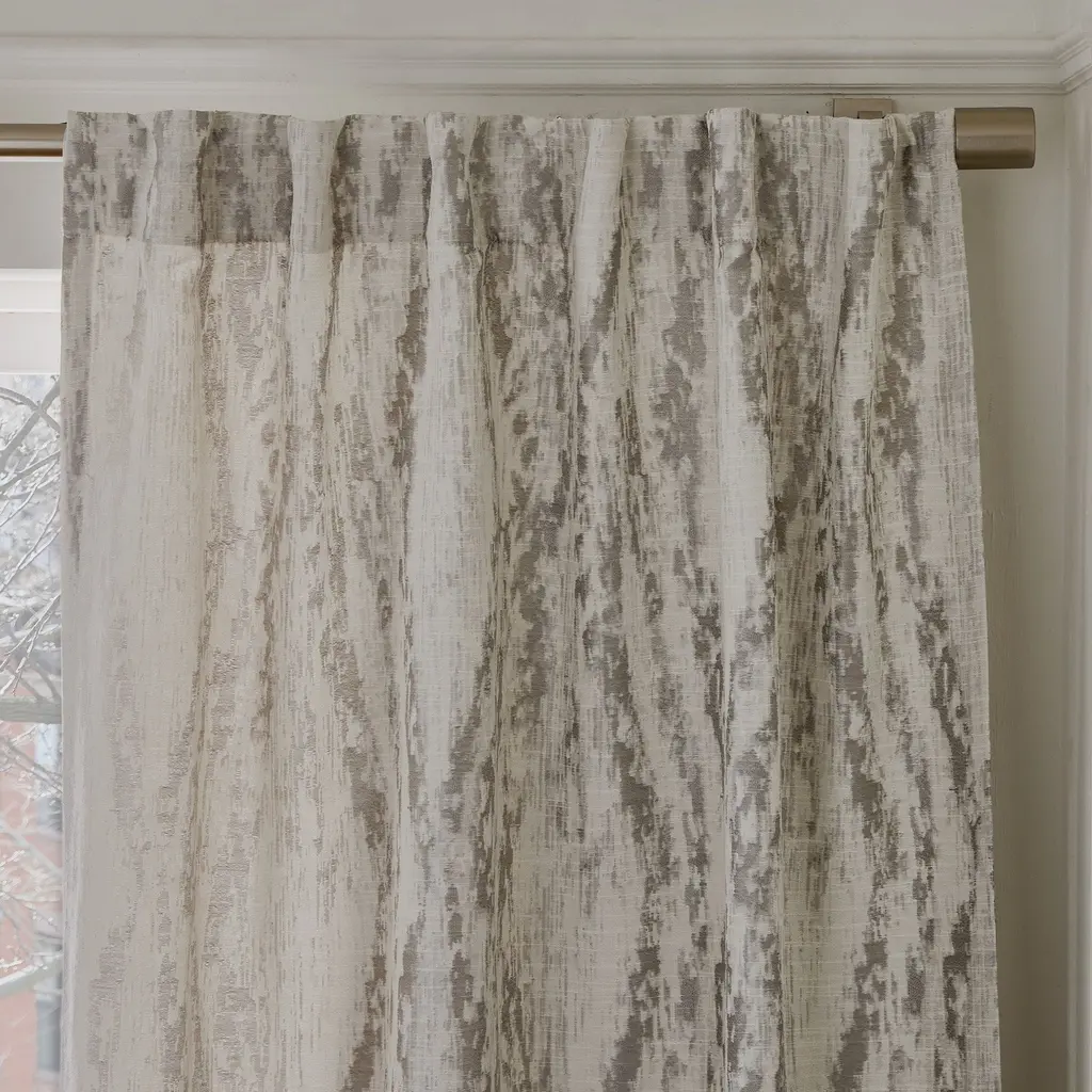 Covered in a moiré motif—a rippled pattern that plays with dark and light layers—our Bark Jacquard Curtain adds a richly-textured touch to any space. We wove in metallic threads to give it a subtle sheen.