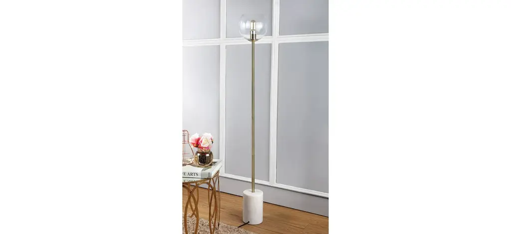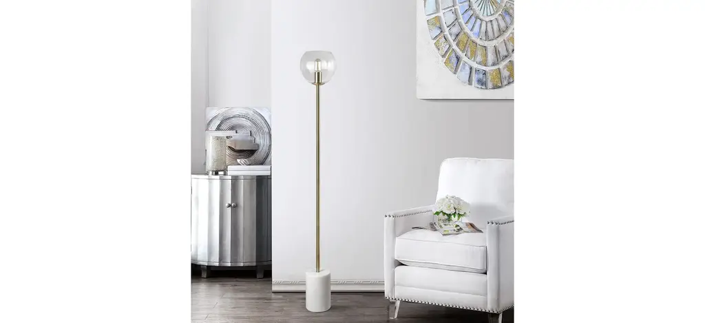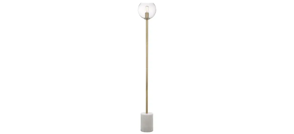 Inspired by minimalist Scandinavian style, this contemporary Barli Floor Lamp brings instant character to the living room. The industrial style of its single bulb lends a dramatic glow, while its gold finish adds warmth. Designers love its posh white base.