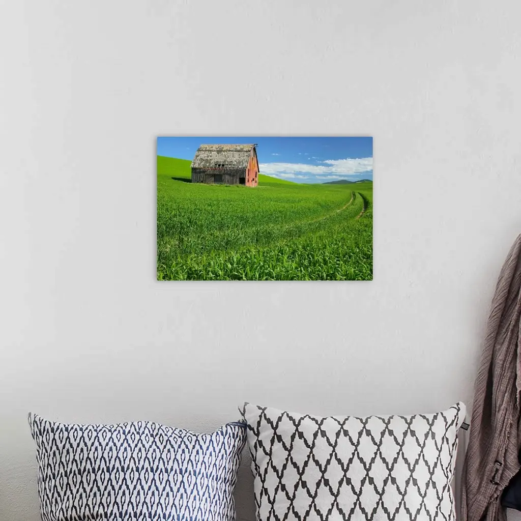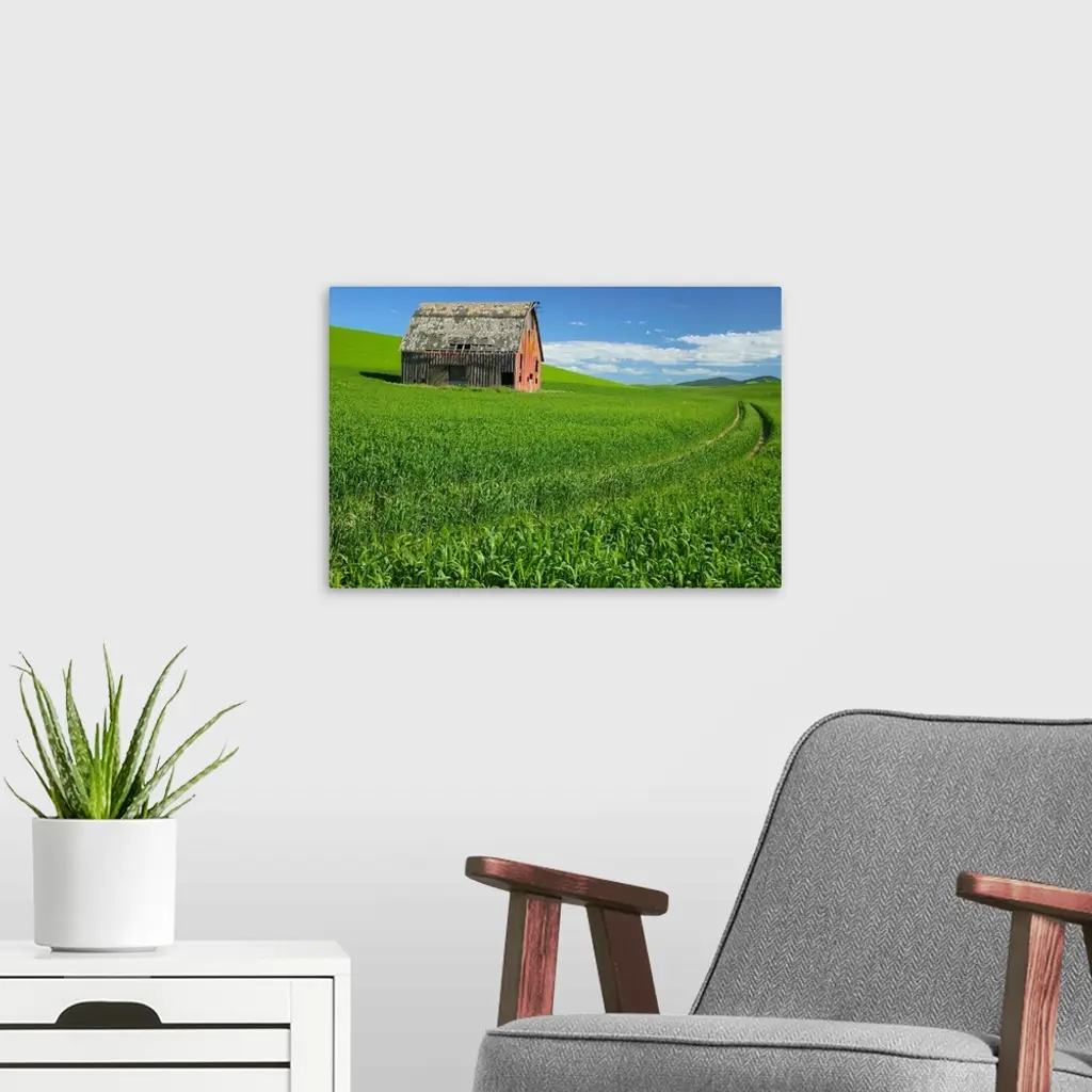 Barn And Vehicle Tracks In Wheat Field In Idaho wall art for home and office decor. Discover canvas art prints, photos, mural, big canvas art and framed wall art in GreatBigCanvas.com's varied collections.