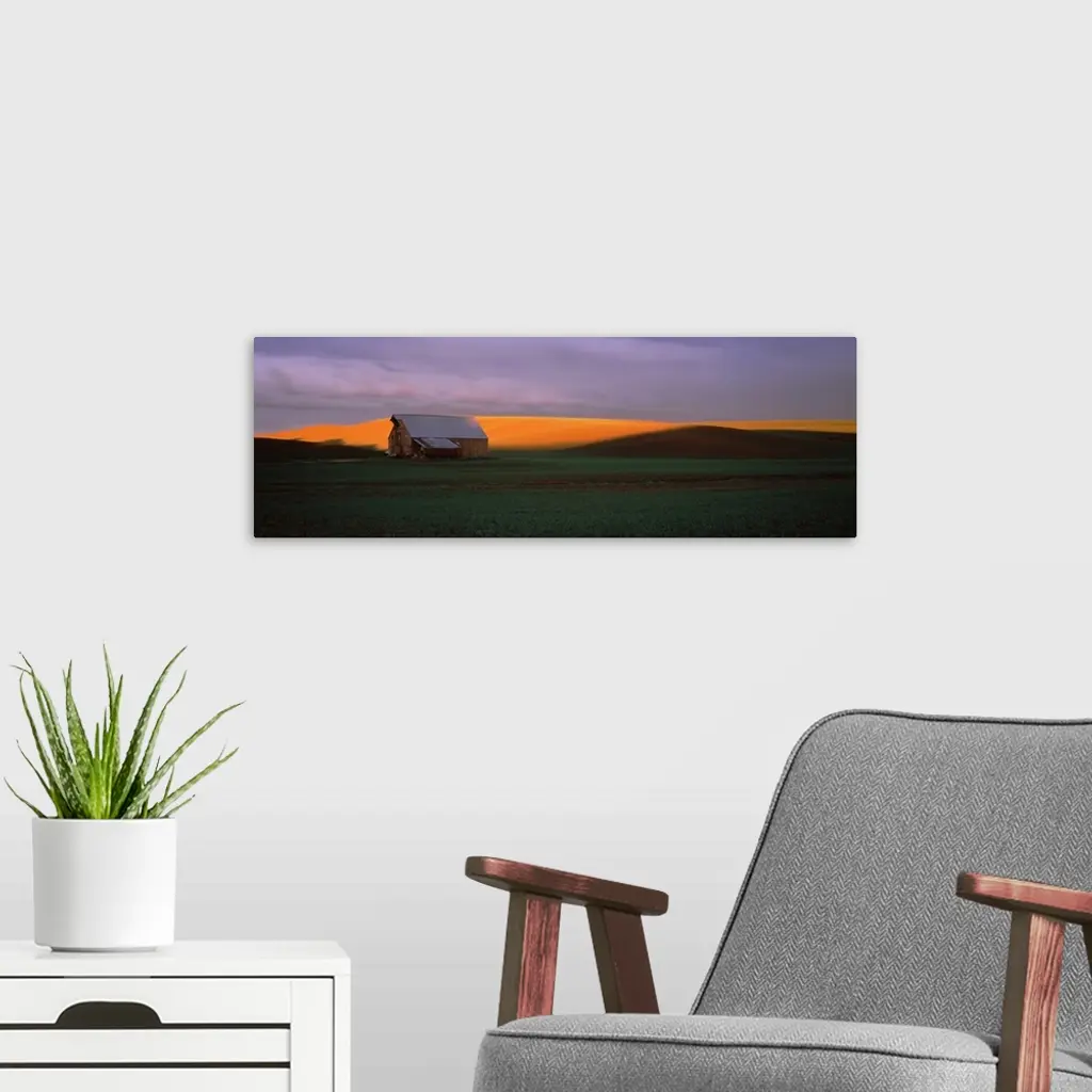 Barn in a field at sunset, Palouse, Whitman County, Washington State, wall art for home and office decor. Discover canvas art prints, photos, mural, big canvas art and framed wall art in GreatBigCanvas.com's varied collections.