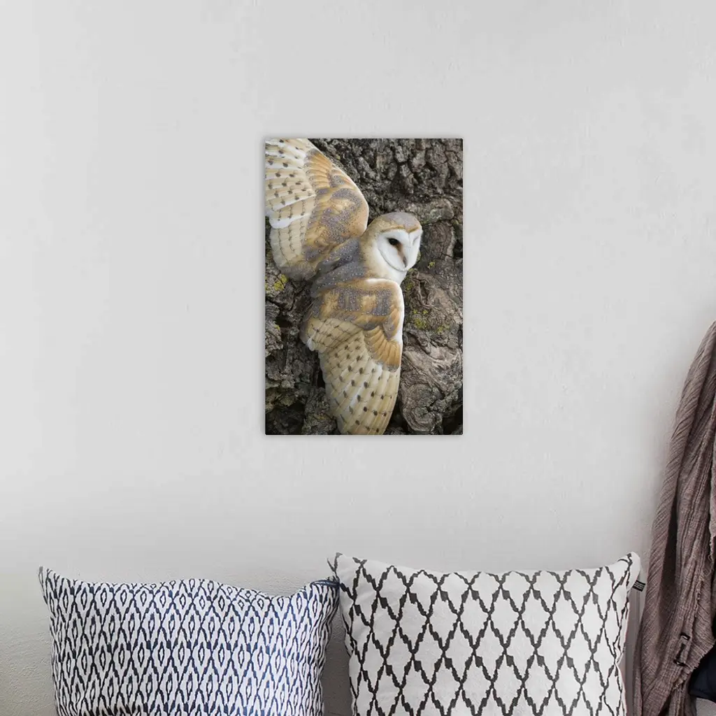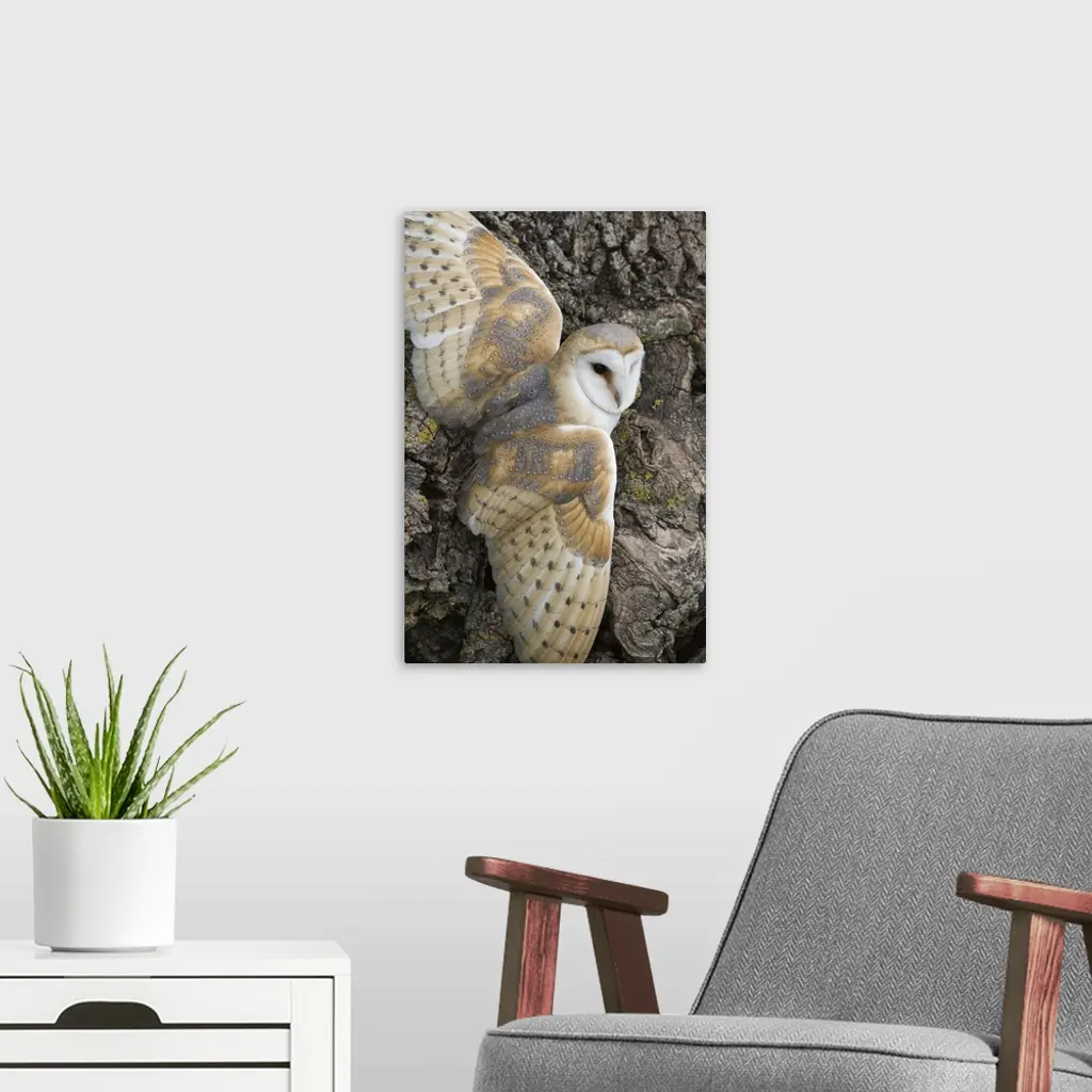 Barn owl, captive, Cumbria, England wall art for home and office decor. Discover canvas art prints, photos, mural, big canvas art and framed wall art in GreatBigCanvas.com's varied collections.