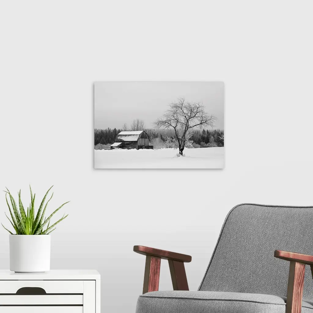 Barn With Tree In Winter, Thunder Bay, Ontario, Canada