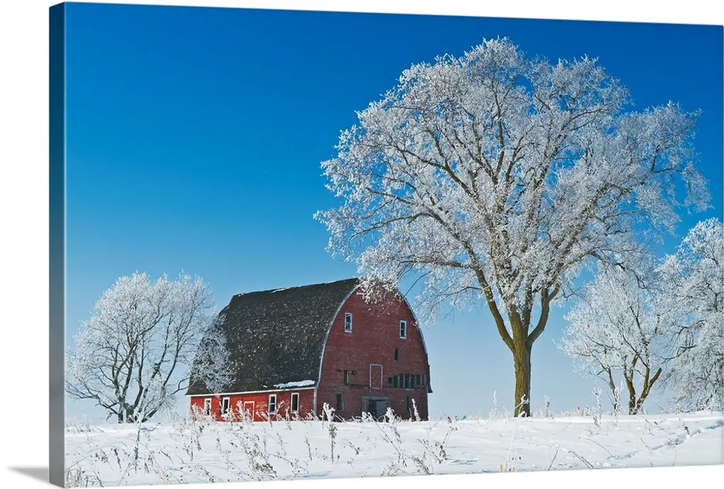 Barn with tree in winter, Thunder Bay, Ontario, Canada