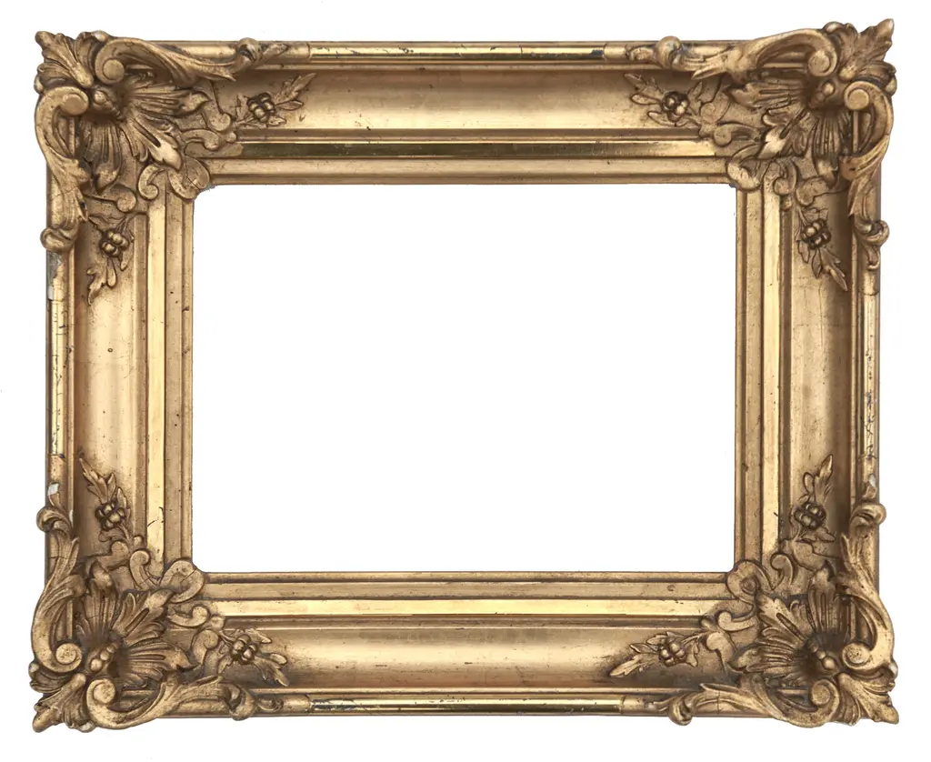 Golden wooden frame with patinated gold leaf. with a baroque taste. Please, contact the Concierge service for further information.