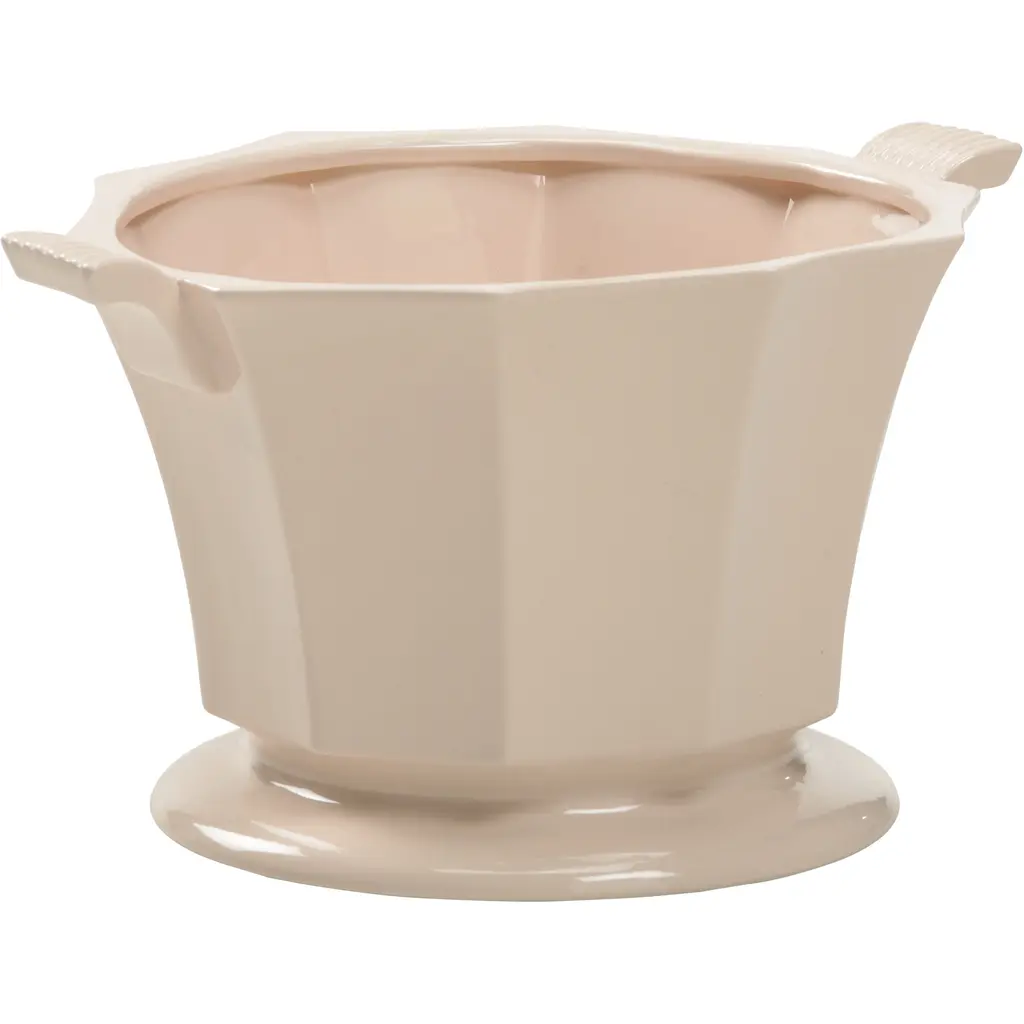 EXQUISITE IN ITS SOPHITICATION AND SIMPLICITY, THIS PLANTER DESIGNED BY BILL CAIN FEATURES FACETED SIDES AND A PEDESTAL BASE.