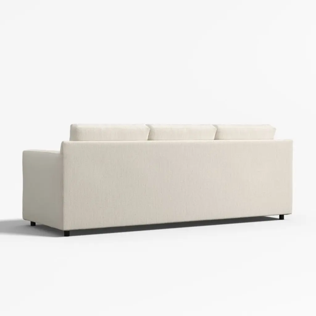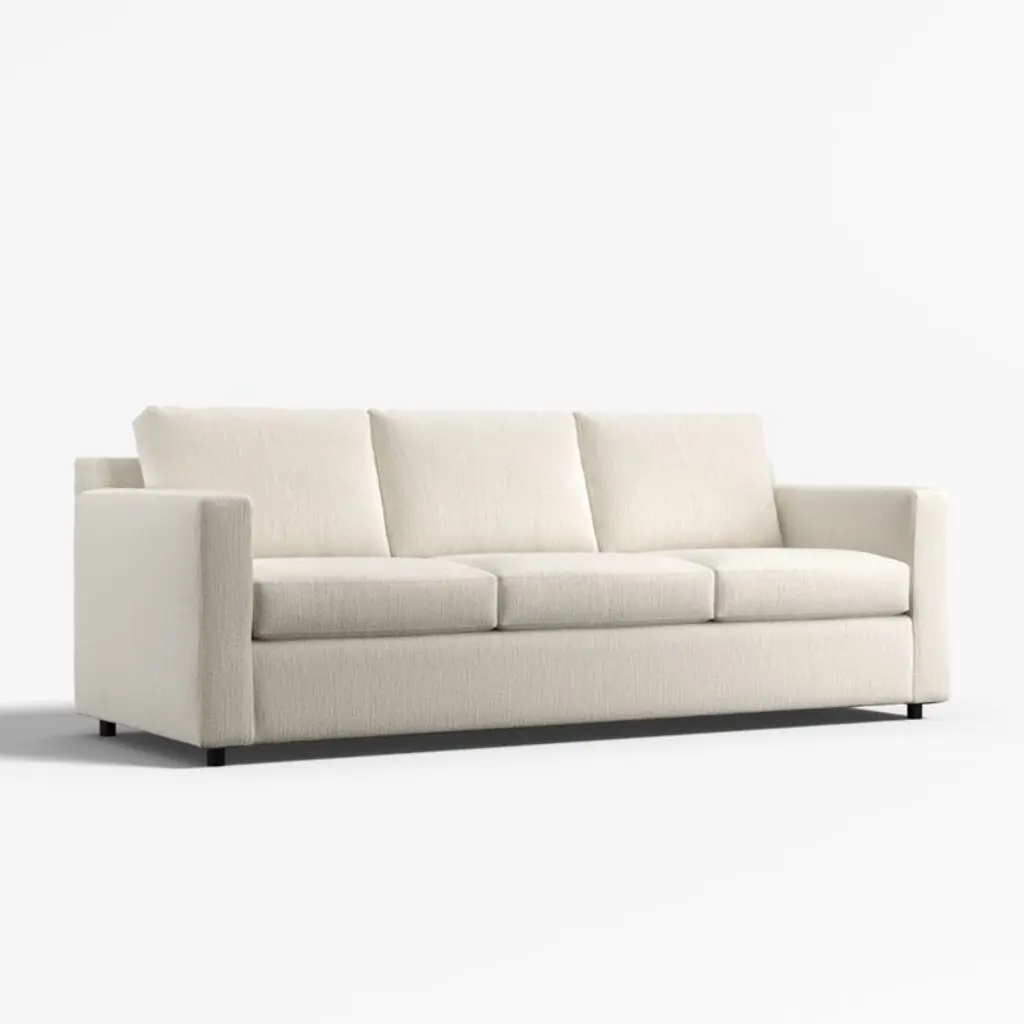 Barrett makes modern affordable and carefree. Upright yet comfortable, this versatile collection looks casual and clean in a contemporary fabric that feels great to the touch and is so durable you don't need to worry about spills or pets. Designed to always look its best, even in high-traffic family rooms, the 3-seat sofa dresses up or down to suit your space. The Barrett II 3-Seat Track Arm Sofa is a Crate & Barrel exclusive.