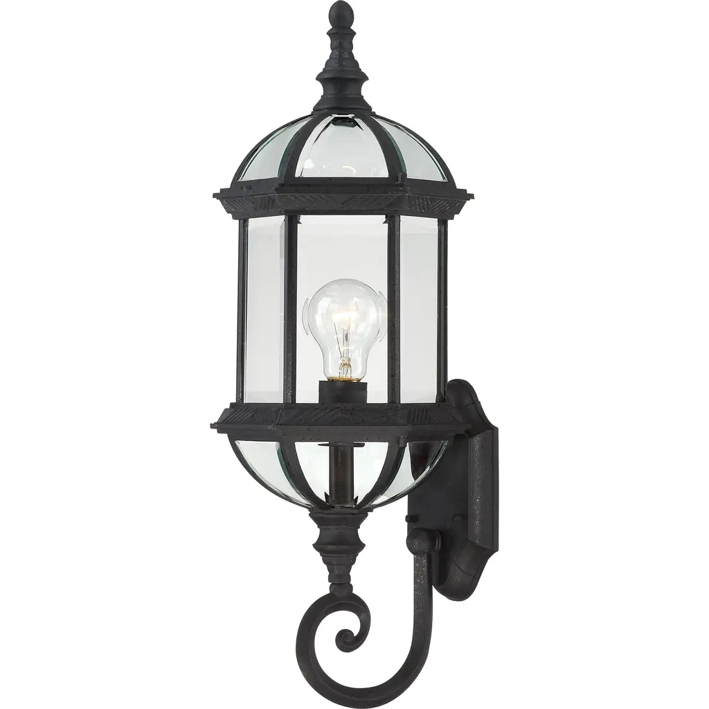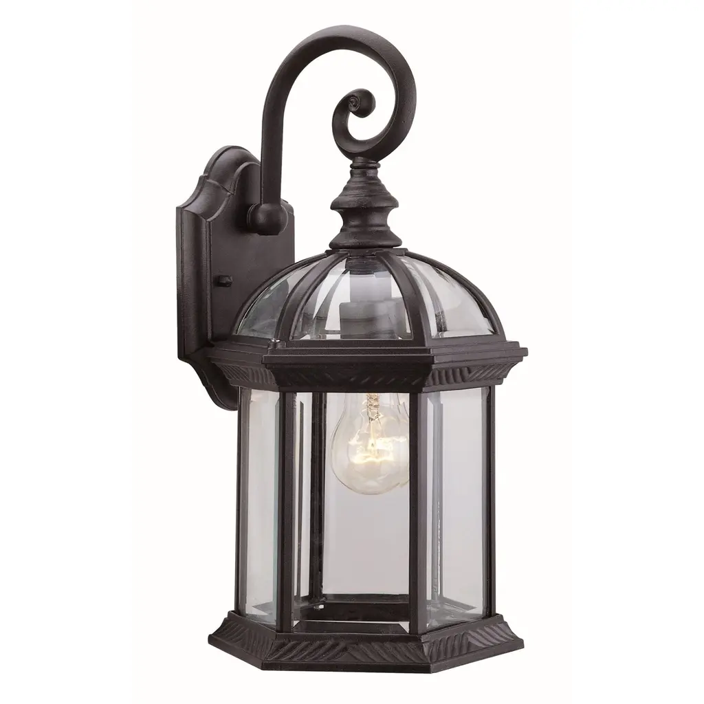 This 1 light wall lantern from the Barrie collection is a perfect outdoor embellishment with classic and sophisticated details. Made from cast aluminum, this outdoor light is able to withstand the elements and features a beautiful Black finish with clear beveled glass panels.