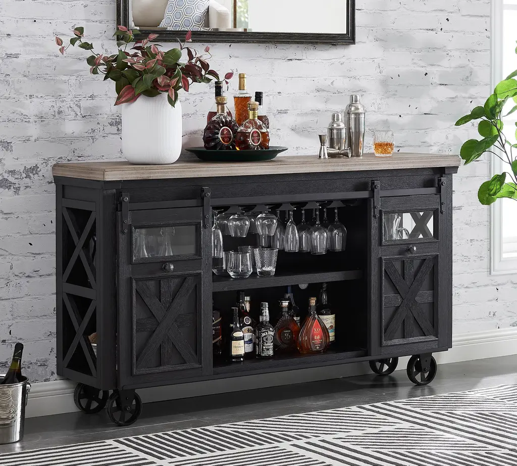 The perfect piece for playing host. This console is set on wheels, making it easy to carve out a space for guests anywhere in your home. It makes a great dining room buffet but is designed as a dedicated bar with ample room to store your favorite vintages, entertaining essentials, and glassware.