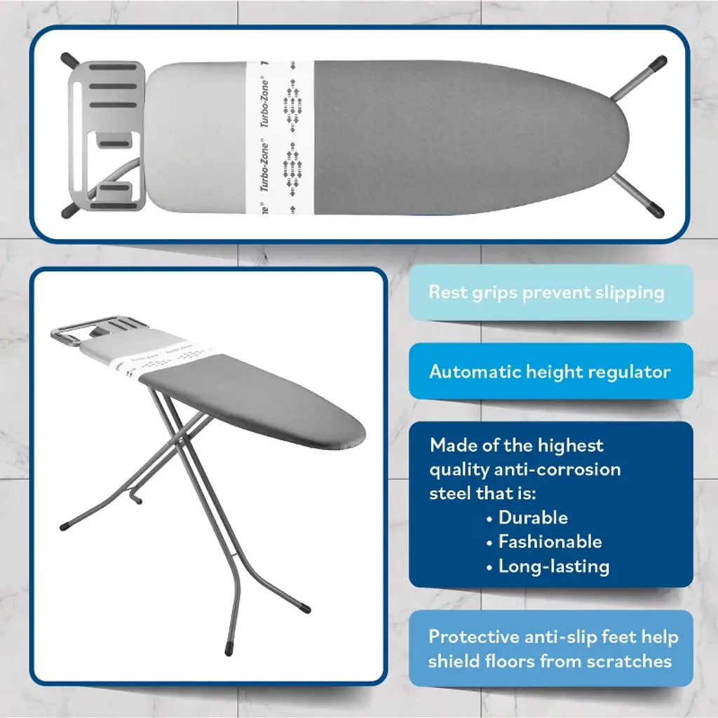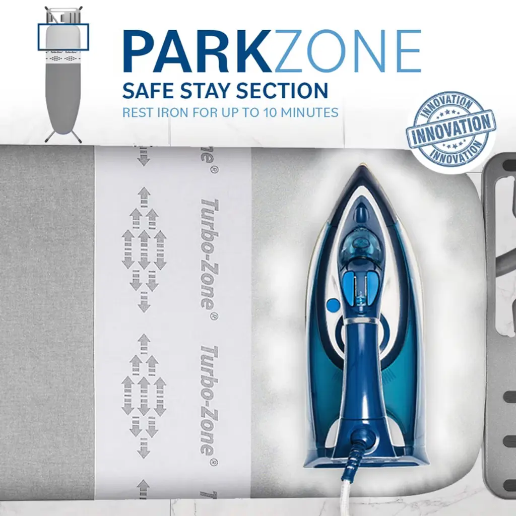 Bartnelli Heavy Duty Ironing Board 48x15, Turbo & Park Zone, Steel Frame, Gray