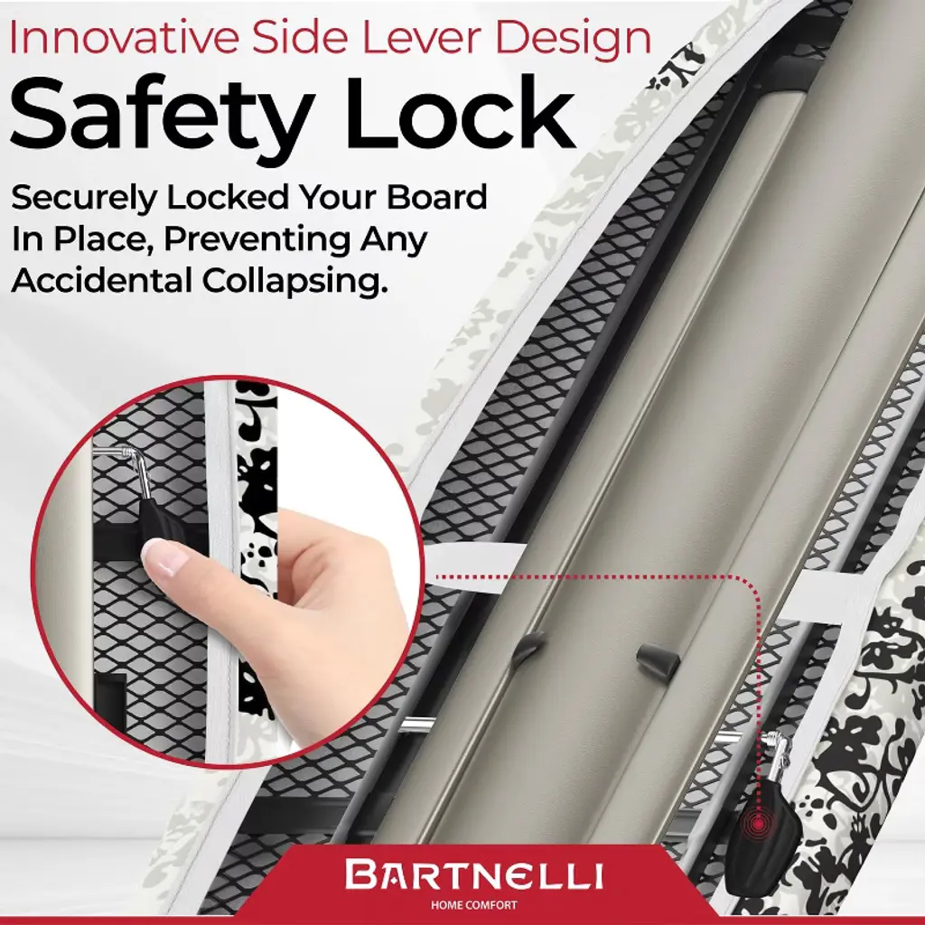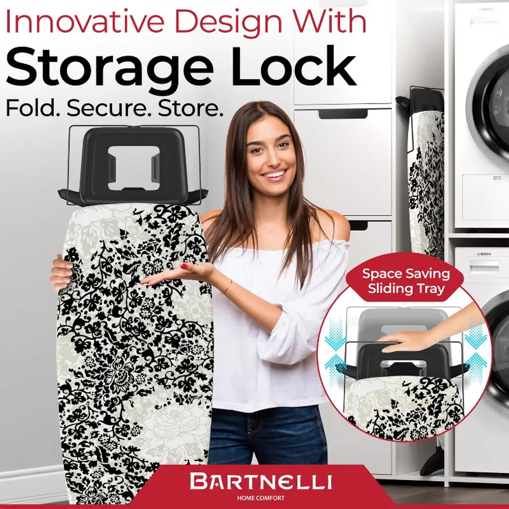 The Original Bartnelli Pro Luxury ironing Board, The Best Premium Ironing Board in the world. The Board that revolutionized Ironing around the globe, designed manufactured and mad in Europe to stay steady. The Bartnelli pro luxury Extra-Wide Ironing Board has a reinforced metal frame and sturdy steam rest strong enough for even heavy steamers. A spacious 51" x 19" surface with a smooth 100% cotton cover makes ironing faster and easier. Adjustable height, foldable T-leg design, hanging rack, and washable pad keep it practical and convenient. Stable, strong, and built to last. An ironing board should help you get the job done — not wobble, shift, or make you wrestle with it. That’s why the Bartnelli Extra-Wide Ironing Board is built stable and durable from the ground up. Crafted in Europe, its reinforced metal frame keeps it steady under pressure, so you can press with confidence, not caution. The frame’s strength isn’t just for show — it’s engineered to handle daily use and keep its stability for years. The generous 51" x 19" surface gives you plenty of room to work on everything from shirts to king-size sheets without constant repositioning. And the ironing surface itself? A thick 100% cotton cover layered over resilient foam padding, designed to keep your iron gliding smoothly — no sticking, no snags, just crisp results every time. The steam iron rest isn’t an afterthought — it’s built sturdy enough to safely hold even a heavy steamer, keeping it stable and secure while you work. Everything else you need is right here: a hanging rack to keep freshly pressed clothes wrinkle-free, and a washable pad to keep your surface fresh and ready. Adjustable height settings let you tailor the board to your comfort, whether you prefer to iron standing tall or seated. When the job’s done, the T-leg frame folds down quickly, locks securely, and tucks neatly into a closet or laundry room corner. With its aluminum lightweight build it’s light enough to move with ease, yet solid enough to handle big loads and frequent use without losing its stability. With its strong metal frame, extra-wide workspace, and thoughtful features, the Bartnelli Extra-Wide Ironing Board makes ironing smoother, faster, and far less of a hassle — all while looking good enough to leave out between uses. Backed by a one-year warranty, it’s made to be a dependable part of your home for years to come. The Legendary Bartnelli Pro Luxury Ironing Board This isn’t just an ironing board — this is the legend. the most premium ironing board in the world. The one that revolutionized ironing boards forever, setting the gold standard for stability, style, and performance. Born and made in Europe, crafted with precision, and engineered to stand its ground no matter how fierce the steam or how stubborn the wrinkle. The Bartnelli Pro Luxury Extra-Wide board isn’t just built — it’s forged for performance. Stability Worthy of a Legend Ironing boards should help you, not fight you. That’s why the Pro Luxury is built on a reinforced Aluminum frame designed to stay rock-solid under pressure. No wobbling. No shaking. Just pure, steady support whether you’re tackling a delicate blouse or a king-size sheet. And when we say strong, we mean strong enough to handle even the heaviest steam irons and steamers without a hint of tipping or shifting. A Giant Arena for Your Clothes The extra-wide 51" x 19" surface is your wrinkle-fighting battlefield — big enough to handle long dresses, fitted sheets, and every garment in between without endless repositioning. Its 100% cotton cover, layered over resilient foam padding, turns ironing into a smooth glide rather than a frustrating push. No sticking, no bunching — just flawless results. Every Detail, Engineered for You • Steam Rest Built for Battle – Securely holds heavy steam stations, keeping them safe and ready between passes. • Hanging Rack – Your freshly pressed clothes stay crisp, clean, and ready to wear. • Washable Pad – Keeps your surface fresh and ready for the next round. • Adjustable Height – Multiple settings to fit your comfort, whether you iron standing tall or seated. • Folds Fast, Stores Easy – The T-leg design collapses smoothly, locks in place, and tucks neatly away. • Lightweight Yet Mighty – Aluminum construction makes it easy to carry while maintaining unmatched strength. Built to Last — And Look Good Doing It Unlike ordinary boards, this one’s designed to stand the test of time and the test of style. Strong. Stable. Elegant. It’s the kind of ironing board you don’t hide away — you show off. And because it’s backed by Bartnelli’s one-year warranty, you know it’s a piece you can trust for years of crisp, perfect finishes. The Bartnelli Pro Luxury — Stable. Strong. Built for victory over wrinkles. Because legends don’t wobble.