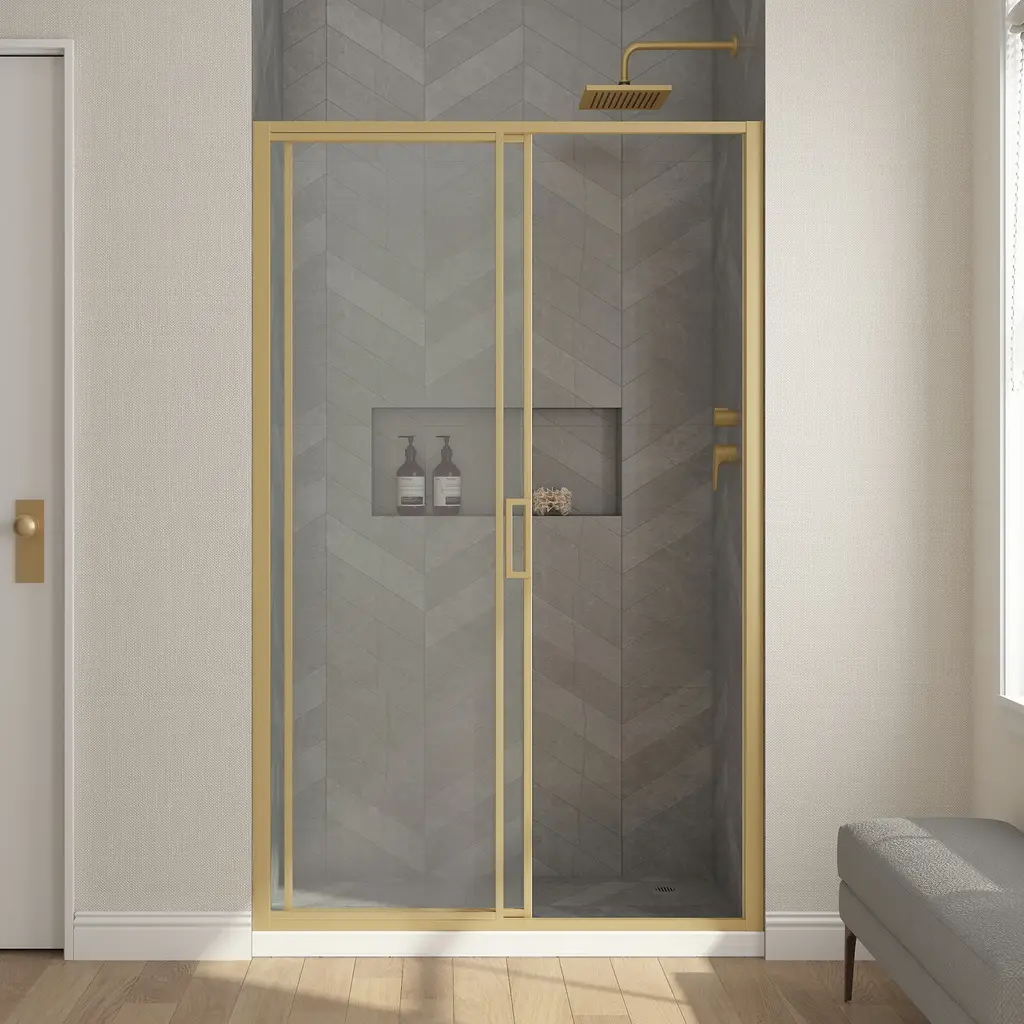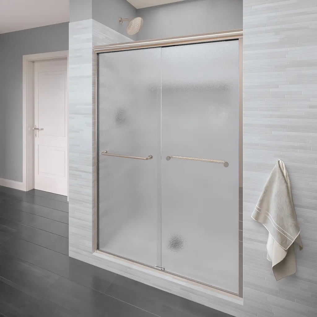 The Infinity glass shower enclosure proves that less is more with its frameless bypass glass panels. The quarter-inch thick glass features polished edges and showcases two through the glass towel bars. Your safety is ensured with an insert in the header that keeps the panels secure. Moderate DIY Skills are recommended for installation of the shower enclosure.Basco INFH05A5870OB Features:Basco INFH05A5870OB Specifications: