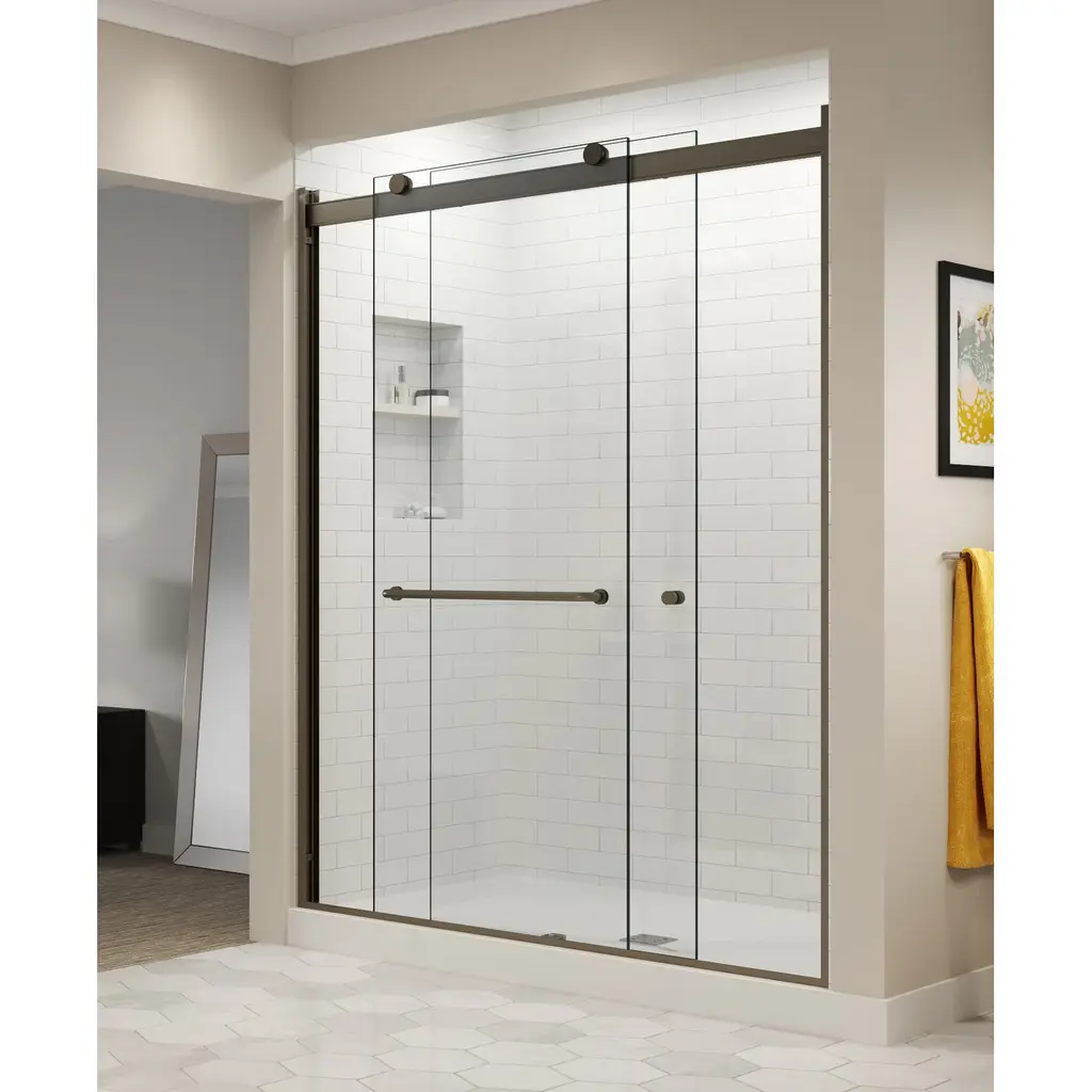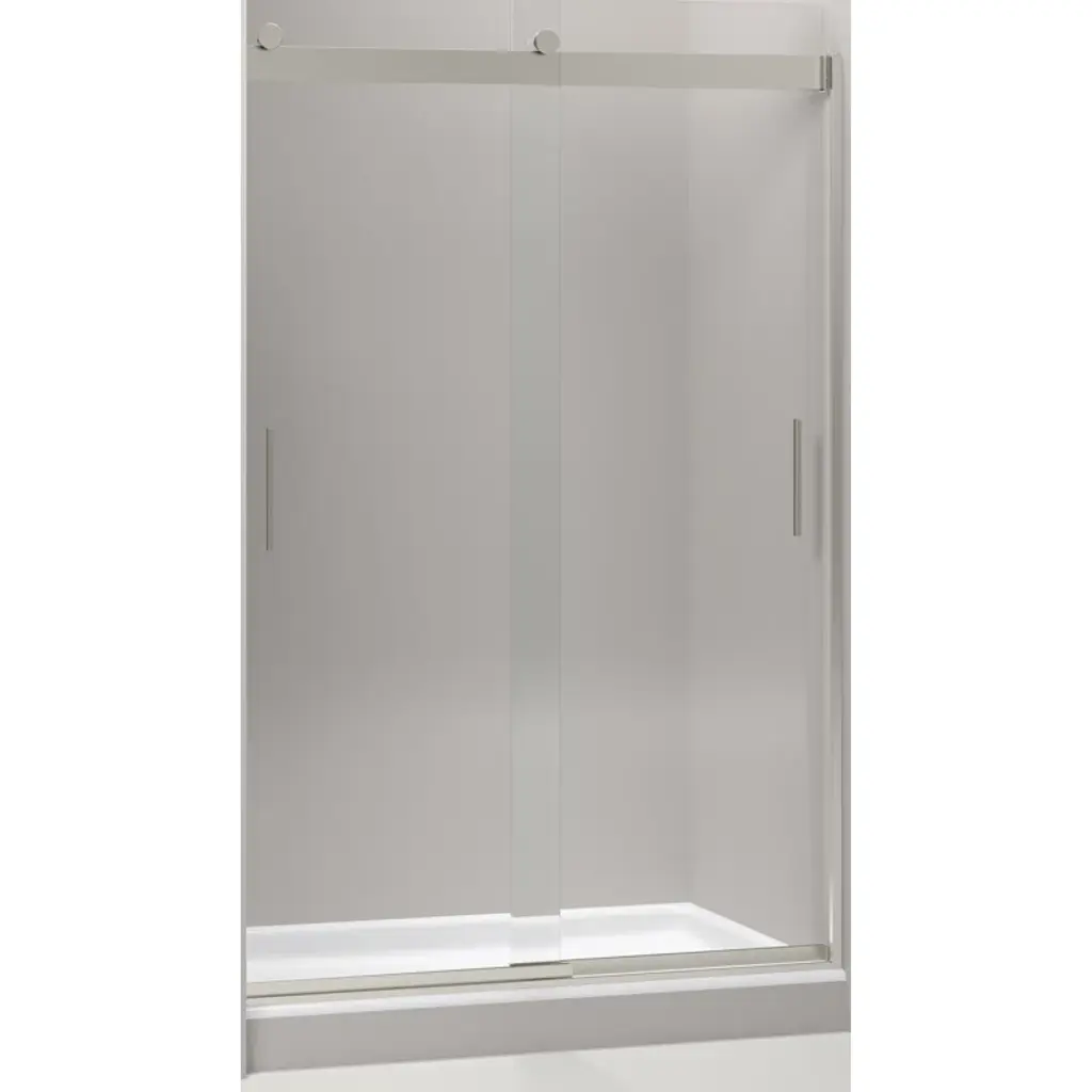 With its semi-frameless design and sleek header, the Rotolo sliding shower door adds a modern touch to your shower enclosure. This door features a dual bypass rolling design and uses two rollers and an anti-jump mechanism to ensure smooth opening and closing. Crafted from ultra-durable safety-tempered glass, the two 1/4-inch thick heavy-cut clear glass panels beautifully showcase the interior of your shower. The reflective, lustrous chrome finish and sleek, gently curved towel bar add to the door’s contemporary appeal. And thanks to its precise panel fitting, this door helps eliminate leaks to keep your bathroom tidy. Ideal for all wall substrates - including fiberglass, acrylic, and tile - this shower door is exceptionally easy to install and coordinates with a variety of contemporary styles.Basco RTLH05B5270XP Features:Basco RTLH05B5270XP Specifications: