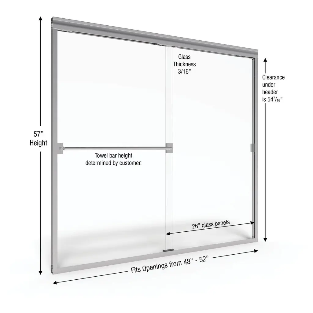 Basco Classic 57" High X 52" Wide Bypass Framed Tub Door With Clear - Chrome