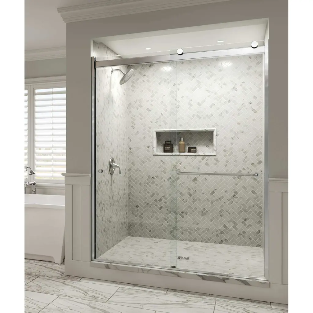 With its semi-frameless design and sleek header, the Rotolo sliding shower door adds a modern touch to your shower enclosure. This door features a dual bypass rolling design and uses two rollers and an anti-jump mechanism to ensure smooth opening and closing. Crafted from ultra-durable safety-tempered glass, the two 1/4-inch thick heavy-cut clear glass panels beautifully showcase the interior of your shower. The reflective, lustrous chrome finish and sleek, gently curved towel bar add to the door’s contemporary appeal. And thanks to its precise panel fitting, this door helps eliminate leaks to keep your bathroom tidy. Ideal for all wall substrates - including fiberglass, acrylic, and tile - this shower door is exceptionally easy to install and coordinates with a variety of contemporary styles.Basco RTLH05B5270CL Features:Basco RTLH05B5270CL Specifications: