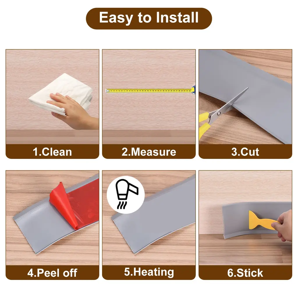 Self-adhesive baseboard molding trim for covering gaps between floors and walls in garage, living room, bathroom, bedroom, RVs, kitchen, during house renovations.Specification:Material: PVCColor: WhiteLength: 39.37Ft/12mWidth: 4in/10cmThickness: 0.09 inch/0.25 cmPackage Included: 1 x roll of baseboard molding trimAdvantage:The wall baseboard molding is made from PVC material, flexible, wear-resistant, and not easy to fade or deform even with prolonged use.Our vinyl wall base comes with self-adhesive tape and can stick to most smooth surfaces and will not fall off for a long time use.It features a toe design that deals with various situation, especially helping you hide various flaws and uneven surfaces.Just simply clean the wall surface, then cut the length of the wall base you need and peel off the adhesive film on the back for installation.This wall base molding trim has a smooth and even finish, making it easy to clean. Just give it a wipe with a damp cloth and dry it off.Note: For temperatures below 68°F, use a hair dryer to warm the adhesive strip for optimal performance.
