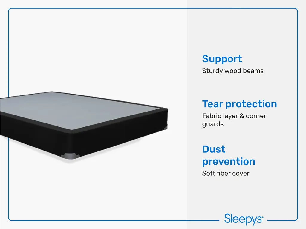 Mattresses aren’t the only important part of your bed; you also need the right foundation. The Sleepy's Basic Foundation provides perfect weight distribution and surface-area support in a single rugged package. The sturdy framework of cross beams and support beams is constructed with rock-solid Grade-2 SPF (spruce-pine-fir) wood, complemented by the exclusive Ever Edge® feature for complete, consistent support. The soft fiber panel and dust cover are protected from tears by and a durable fabric layer and corner guards, making it a great foundation for your bed.