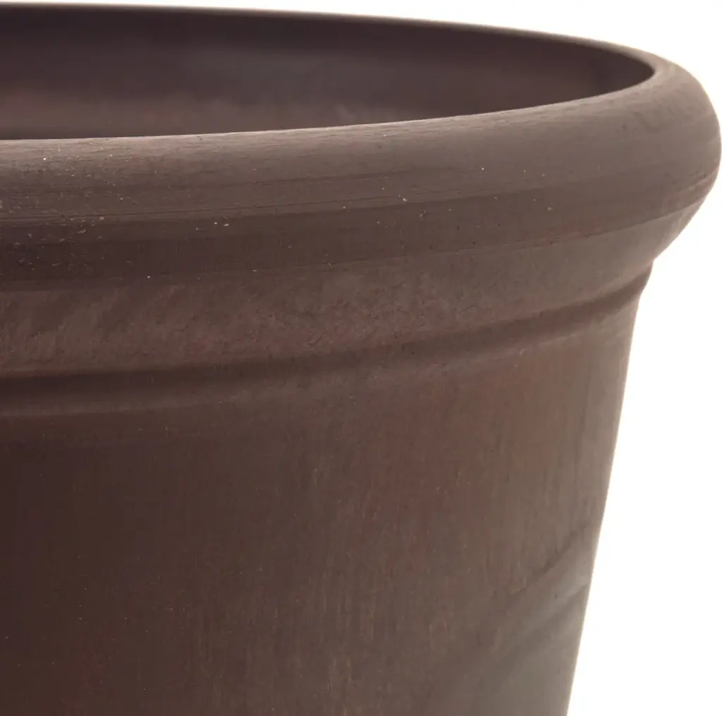 Showcase your favorite flowers and greenery in the ecofriendly Basic Pot. Made from a mix of recycled polymer, stone powder, and wood dust, this brown pot is lightweight, weather-resistant, and durable. Its classic shape and solid color lend to its versatility.