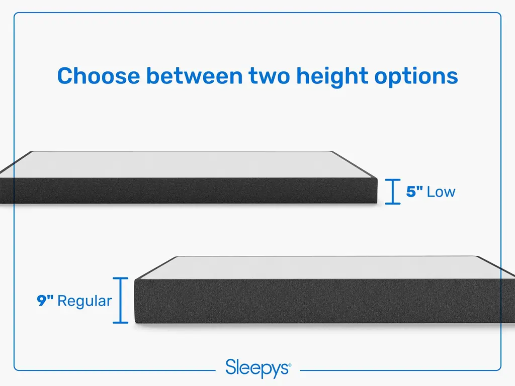 The Easy Assembly foundation offers sturdy steel support, quick setup, and consistent mattress support. Get the support your mattress needs with the quick assembly you want. Made with durable steel and a stretch fabric cover, this 5" or 9" box spring is built to last. Plus, it’s easy to maneuver—all parts, tools and instructions are included for better zzz's in under 10 minutes. 1-Year limited warranty. Twin/Twin XL sizes support 350 lbs; all other sizes support 700 lbs.