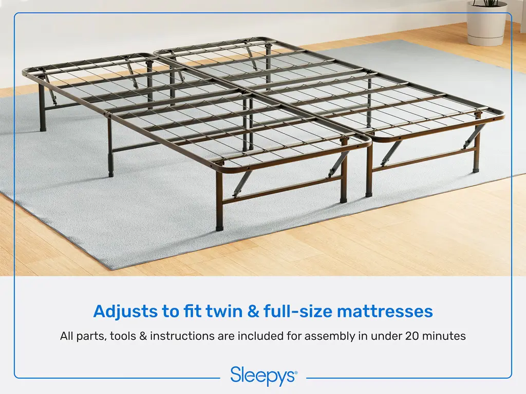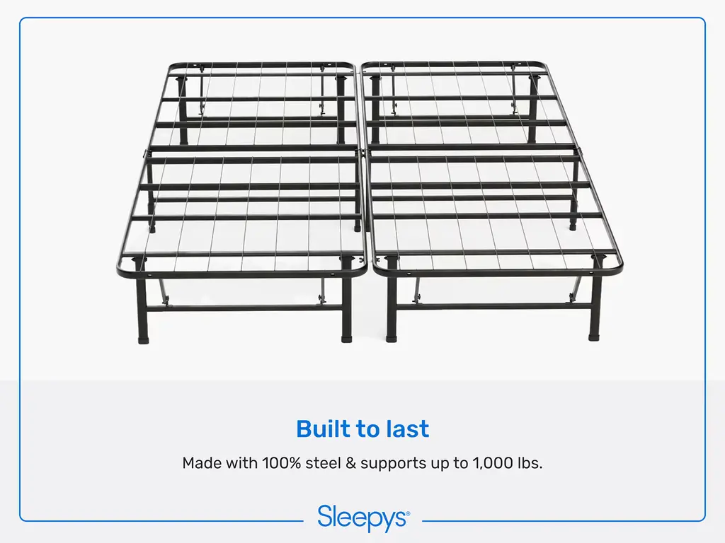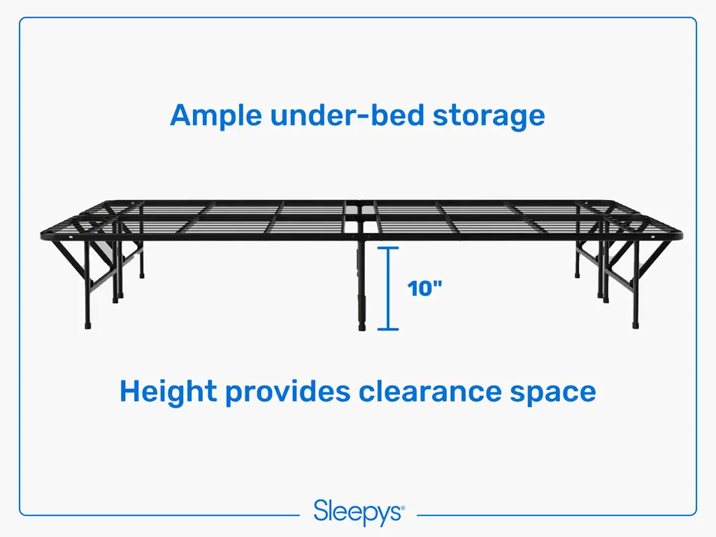 The Basics Platform Frame features a 10" profile for extra storage, durable steel, and easy assembly. This 10" platform bed frame is your one-and-done solution to sturdy mattress support with ample under-bed storage. Made with 100% steel, it can support up to 1,000 lbs. Plus, all parts, tools and instructions are included for easy assembly in under 20 minutes. 1-Year limited warranty.