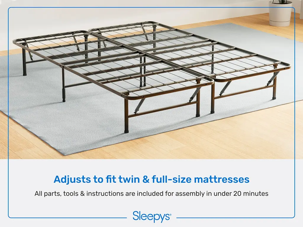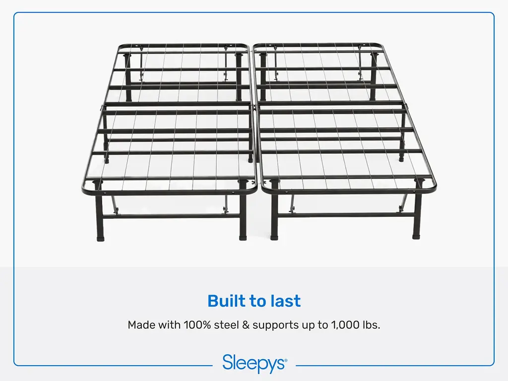 The Basics Platform Frame features a 10" profile for extra storage, durable steel, and easy assembly. This 10" platform bed frame is your one-and-done solution to sturdy mattress support with ample under-bed storage. Made with 100% steel, it can support up to 1,000 lbs. Plus, all parts, tools and instructions are included for easy assembly in under 20 minutes. 1-Year limited warranty.