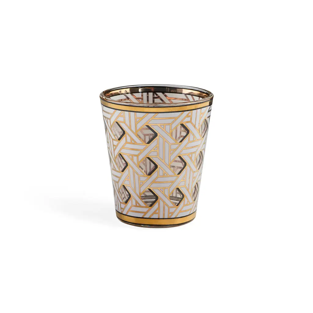 Modern Craft. A little bit preppy, a lot glamorous. Our Basketweave glassware features our modern basket weave pattern in classic black and white with real gold accents. Perfect for a chic cocktail hour or toast-worthy table setting. Packaged in a couture gift box, this four-piece set makes a spirited hostess gift or treat for the dude who loves a good (and good-looking) drink.