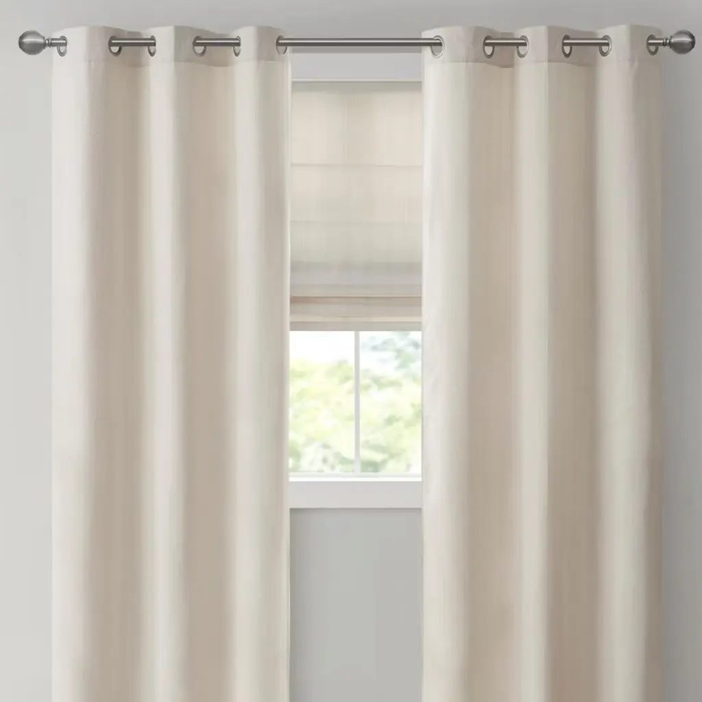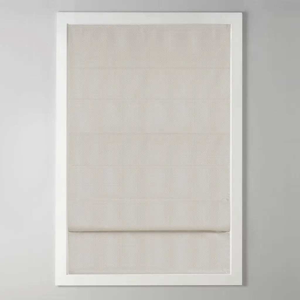 Description The Madison Park Galen Basket Weave Room Darkening Roman Shade offers a simple and convenient update to your home decor. This ivory roman shade features a basket weave texture base fabric that creates a natural look and feel. A thermal foambacking on the reverse provides energy efficiency and enhanced privacy. The cordless retraction mechanism makes it easy to open and close the window shade throughout the day, while the detachable fabric face allows for easier assembly and cleaning by lightly shaking or dusting. Though detachable from the hook and loop fastener, the top face fabric is NOT fully removable. Ready to install right out of the packaging, this roman shade can be hung inside or above the window pane allowing you to find the perfect fit for your home decor. Each shade is also OEKO-TEX certified, meaning it does not contain any harmful substances or chemicals to ensure quality comfort and wellness. Shade measures 64-inches in length and comes in 8 width options to suit multiple standard window sizes; each roman shade is sold as a single and comes with a printed instructional guide as well as an instructional video available on site. Assembly is required. Product Details 34x64in 1 Roman Shade:34inW x 64inL Slat Depth - Front to back:1.5in Recommended Mounting Depth:3in Head Rail:34inW x 1.5inD x 2.5inH Material Face: 100% polyester Flocking: 100% Rayon