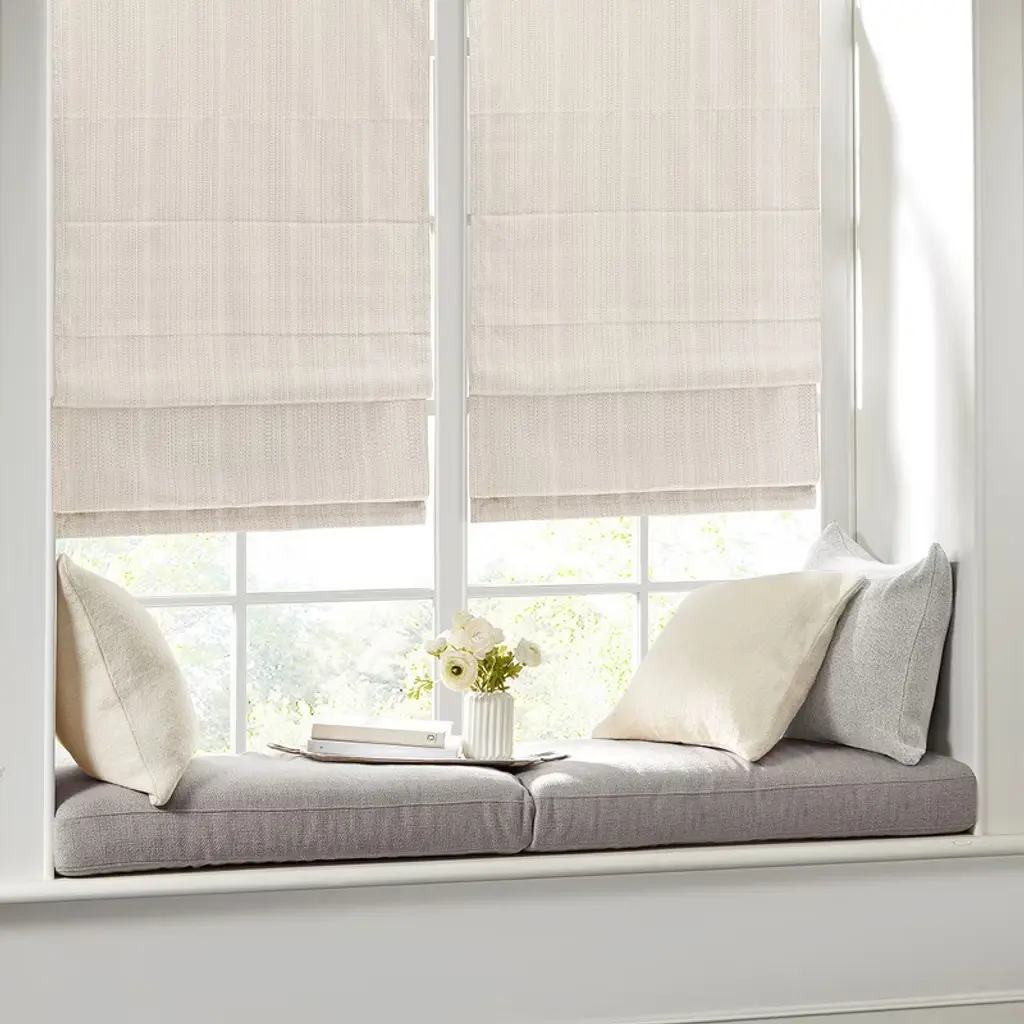 Description The Madison Park Galen Basket Weave Room Darkening Roman Shade offers a simple and convenient update to your home decor. This ivory roman shade features a basket weave texture base fabric that creates a natural look and feel. A thermal foambacking on the reverse provides energy efficiency and enhanced privacy. The cordless retraction mechanism makes it easy to open and close the window shade throughout the day, while the detachable fabric face allows for easier assembly and cleaning by lightly shaking or dusting. Though detachable from the hook and loop fastener, the top face fabric is NOT fully removable. Ready to install right out of the packaging, this roman shade can be hung inside or above the window pane allowing you to find the perfect fit for your home decor. Each shade is also OEKO-TEX certified, meaning it does not contain any harmful substances or chemicals to ensure quality comfort and wellness. Shade measures 64-inches in length and comes in 8 width options to suit multiple standard window sizes; each roman shade is sold as a single and comes with a printed instructional guide as well as an instructional video available on site. Assembly is required. Product Details 23x64in 1 Roman Shade:23inW x 64inL Slat Depth - Front to back:1.5in Recommended Mounting Depth:3in Head Rail:23inW x 1.5inD x 2.5inH Material Face: 100% polyester Flocking: 100% Rayon