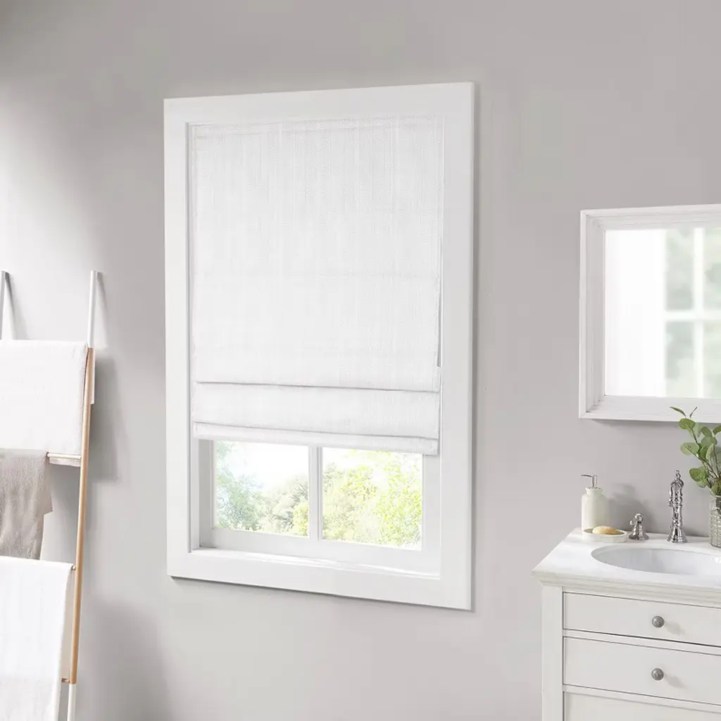 Description The Madison Park Galen Basket Weave Room Darkening Roman Shade offers a simple and convenient update to your home decor. This white roman shade features a basket weave texture base fabric that creates a natural look and feel. A thermal foambacking on the reverse provides energy efficiency and enhanced privacy. The cordless retraction mechanism makes it easy to open and close the window shade throughout the day, while the detachable fabric face allows for easier assembly and cleaning by lightly shaking or dusting. Though detachable from the hook and loop fastener, the top face fabric is NOT fully removable. Ready to install right out of the packaging, this roman shade can be hung inside or above the window pane allowing you to find the perfect fit for your home decor. Each shade is also OEKO-TEX certified, meaning it does not contain any harmful substances or chemicals to ensure quality comfort and wellness. Shade measures 64-inches in length and comes in 8 width options to suit multiple standard window sizes; each roman shade is sold as a single and comes with a printed instructional guide as well as an instructional video available on site. Assembly is required. Product Details 34x64in 1 Roman Shade:34inW x 64inL Slat Depth - Front to back:1.5in Recommended Mounting Depth:3in Head Rail:34inW x 1.5inD x 2.5inH Material Face: 100% Polyester Flocking: 100% Rayon