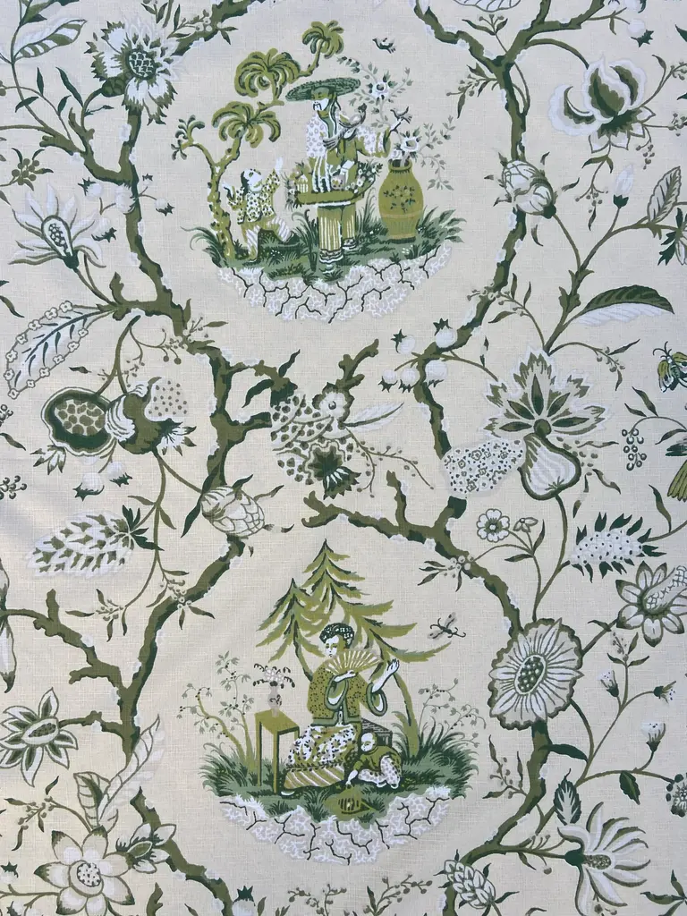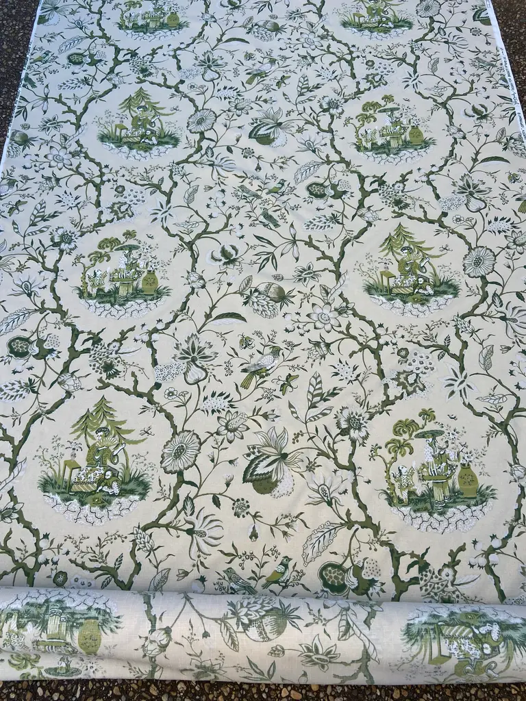 Bassett Mcnab “Tea Garden” Green Chinoiserie Fabric By The Yard